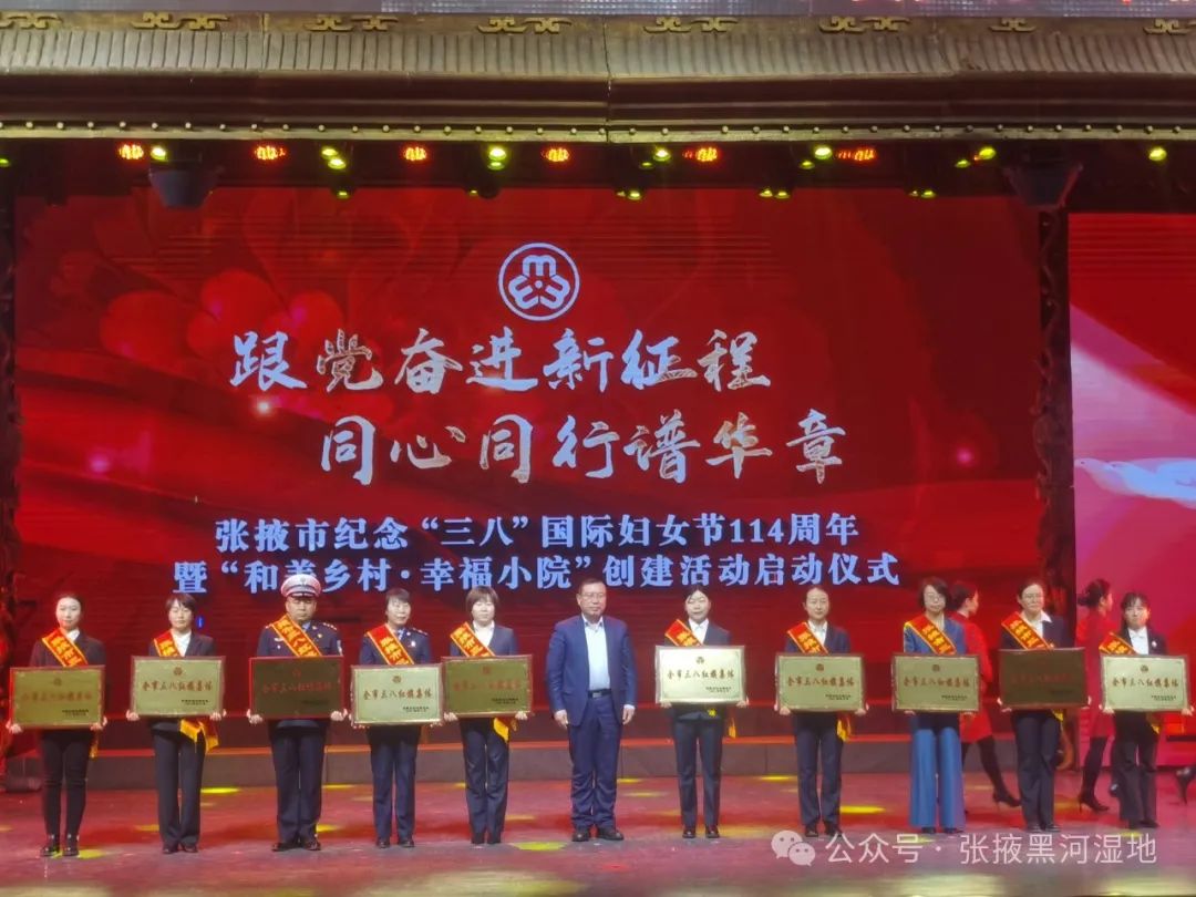 3月6日,张掖市妇女联合会举办纪念“三八”国际妇女节114周年暨“和美家乡·幸福小院”创建活动启动仪式,张掖湿地博物馆被授予三八红旗集体荣誉称号。
