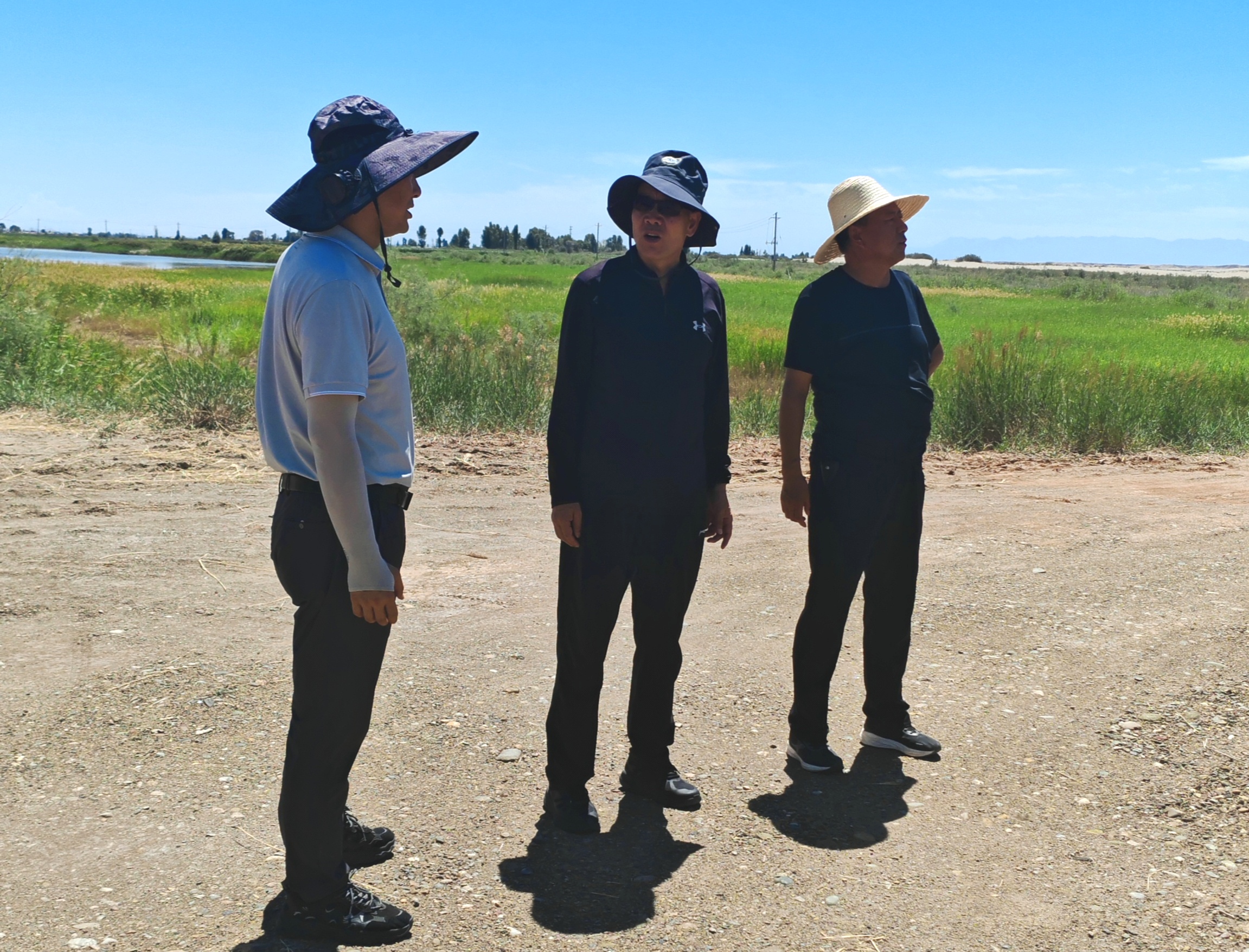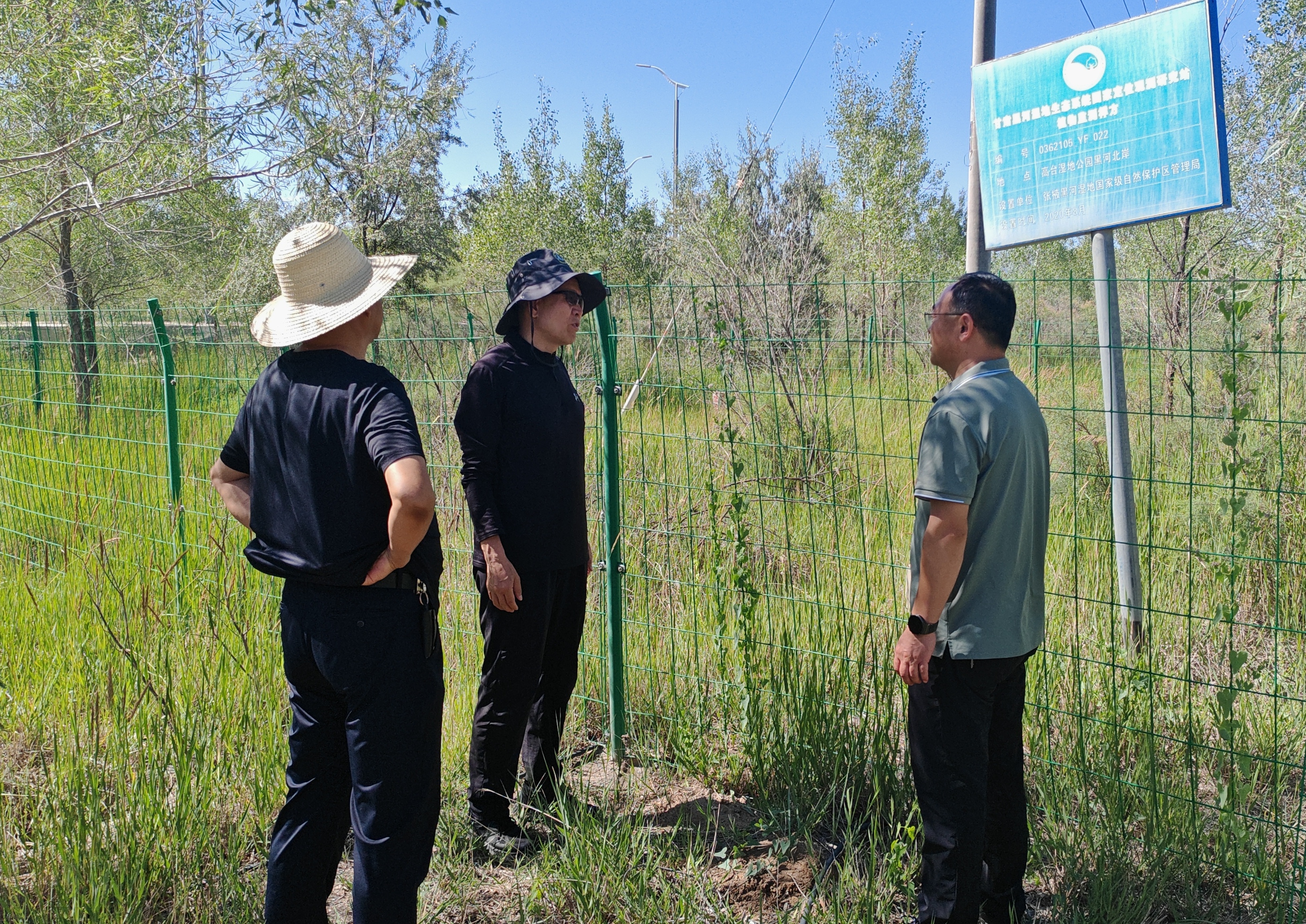 踏勘过程中,冯教授团队实地考察了保护区内重点湿地的生态分布格局,详细了解了区域水文特征与典型植被群落结构,并与保护区管理方就样地、样方科学布设等技术细节进行了深入交流。冯虎元教授指出:“精准的本底数据是制定有效保护策略的基础。此次调查将系统摸清黑河湿地生物资源‘家底’,为保护区科学管理和黑河流域生态修复提供关键支撑。”