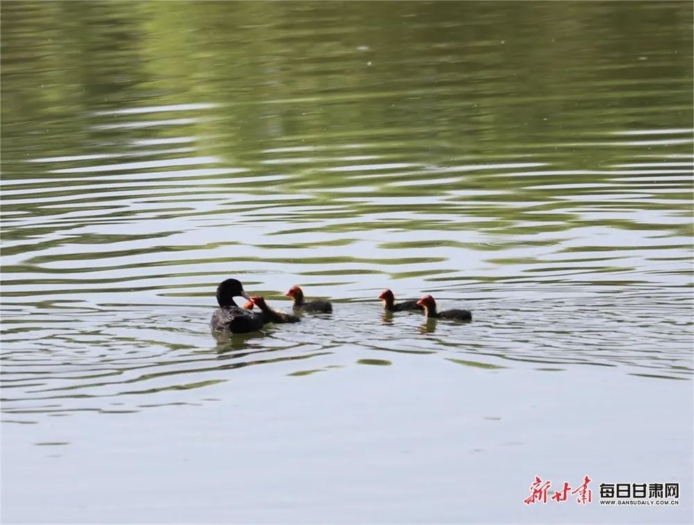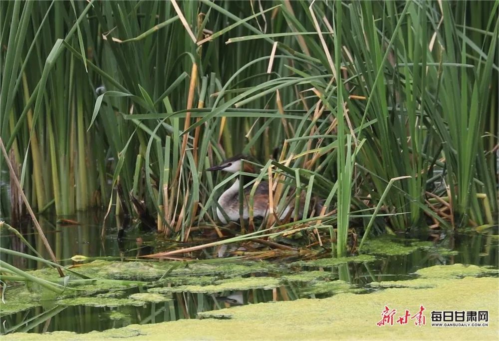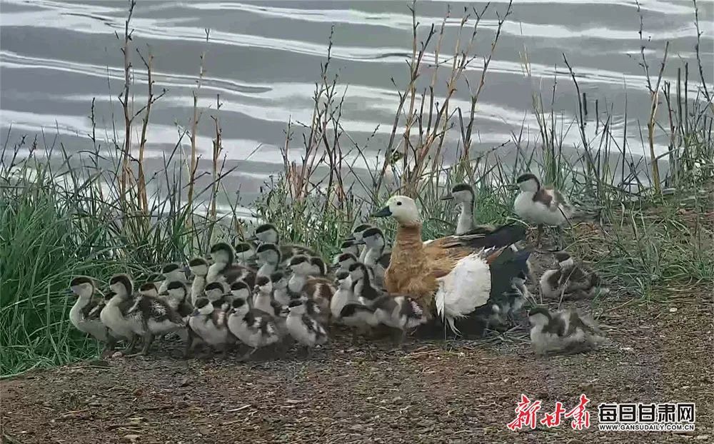 夏日,在山丹县祁家店湿地,毛茸茸的绿头鸭、叽叽喳喳的赤麻鸭、高颜值的赤嘴潜鸭、头戴小红帽的白骨顶和身穿花衣的凤头鹈等幼鸟陆续出巢。