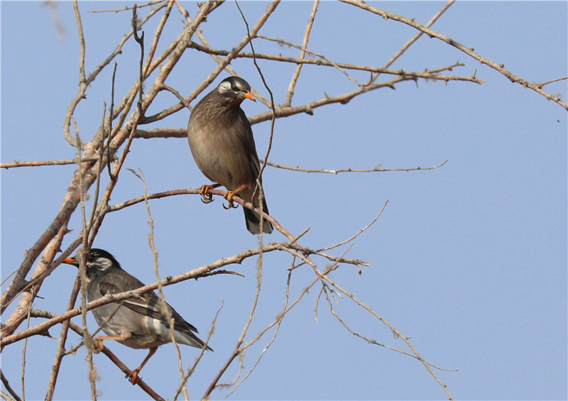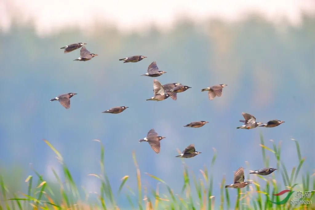 灰椋鸟是一种农林益鸟,2000年8月列入国家保护的有益的或者有重要经济、科学研究价值的陆生野生动物名录,隶属雀形目椋鸟科。有着"高粱头""竹雀""假画眉""哈拉燕"等别称。分布于俄罗斯中部、蒙古、朝鲜半岛、日本。国内除西藏外见于全国各地。迁徙时集结成大群,声势浩大,极为壮观。主要以昆虫为食,也吃少量植物果实与种子。常在草甸、河谷、农田等潮湿地上觅食,休息时多栖于电线上、电柱上和树木枯枝上。