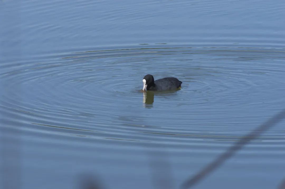 骨顶鸡(Fulica atra)属鹤形目秧鸡科鸟类,为游禽。全身乌黑,外形与野鸭相似,因头部有一块椭圆状的白色角质突起,因此得名。广泛分布于我国境内,在富有芦苇、三棱草等挺水植物的湖泊、水库、水塘、河湾和深水沼泽等地带最为常见。经常成群活动,大部分时间都在水中,善于游泳和潜水,主要吃小鱼、虾、昆虫、植物嫩芽叶、果实、种子等。