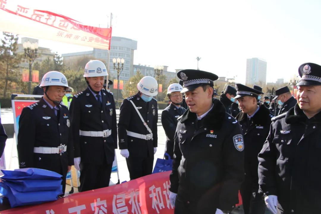为进一步推动维护民警执法权威深入人心,张掖市公安局提前谋划、精心筹备,在第二个中国人民警察节当天,组织市县公安局督察部门同步开展维护了民警执法权威宣传活动。副市长、市公安局党委书记、局长乔振华出席仪式并宣布活动开始,市公安局党委副书记、常务副局长郑英,市公安局党委委员、市纪委监委派驻市公安局纪检监察组组长王荣,市公安局党委委员、政治部主任罗光明,市公安局党委委员、指挥中心主任赵德军,市公安局党委委员、甘州区副区长、甘州分局党委书记、局长范天兵等领导参与宣传。