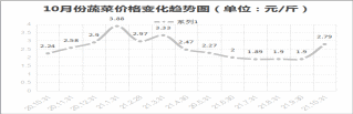 10月31日,新乐超市配送的15种蔬菜平均单价为2.79元,与上月我委监测的18种蔬菜平均单价1.9元相比增加0.89元,涨幅46.84%。与上年同期相比,上涨24.55。(如下图)