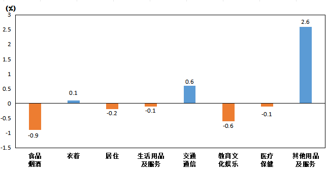 六、教育文化娱乐 | -0.6 | -1.4 | -0.9 |
