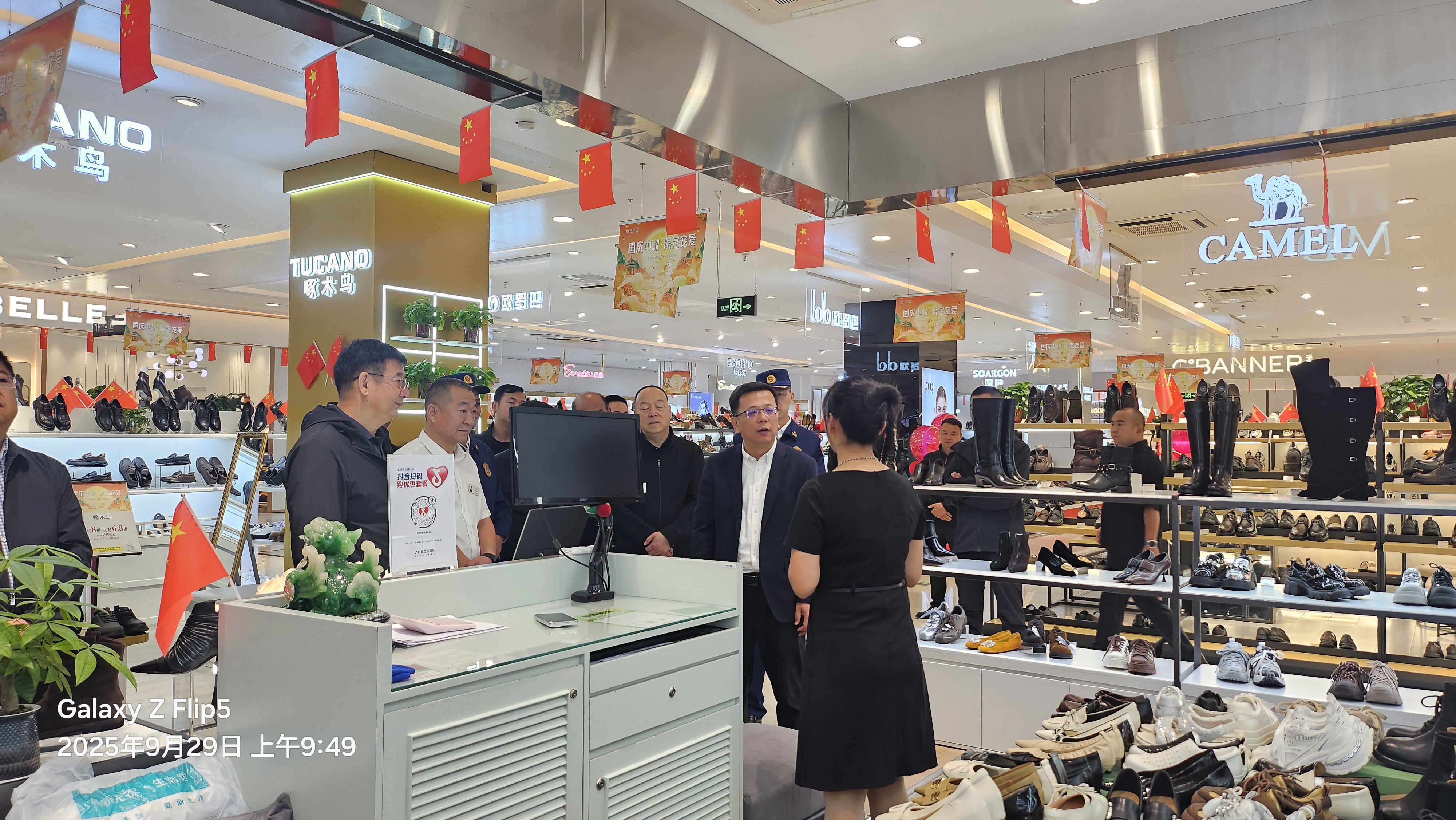 检查组一行先后前往国芳百货、爱琴海购物中心、恒食易购超市等人员密集场所,实地检查了消防设施配备、安全通道畅通、应急保障落实及市场物资供应等情况。