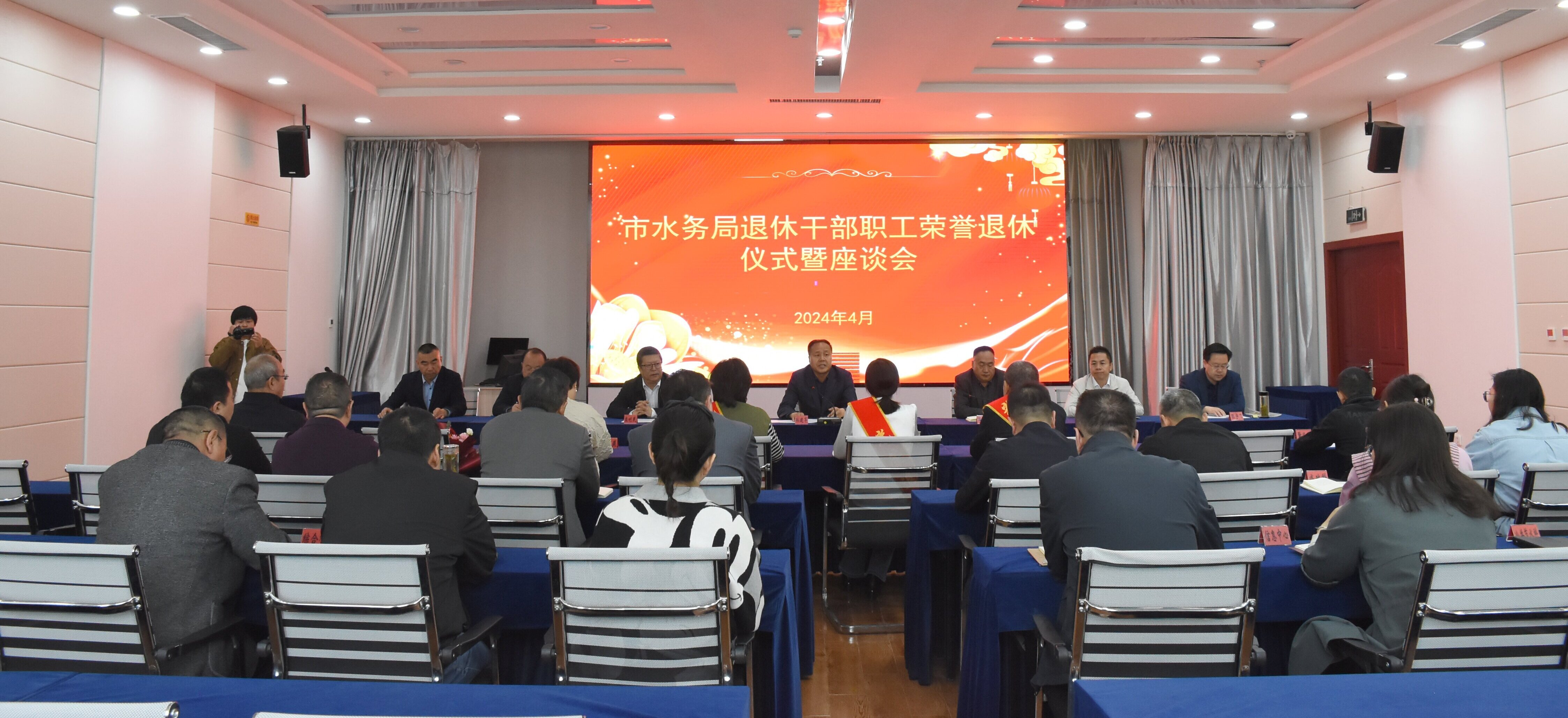 为进一步增强退休干部职工的荣誉感、归属感和幸福感,表达局党组对退休干部职工的关心和关爱,4月12日上午,市水务局为2023年下半年至今年以来新退休的干部职工举行荣誉退休仪式,以最温馨的仪式向退休同志表达崇高的敬意,以最真挚的情谊欢送老同志光荣退休。市水务局班子成员,县处级领导,机关科室负责人及退休人员所在科室全体人员参加仪式。
