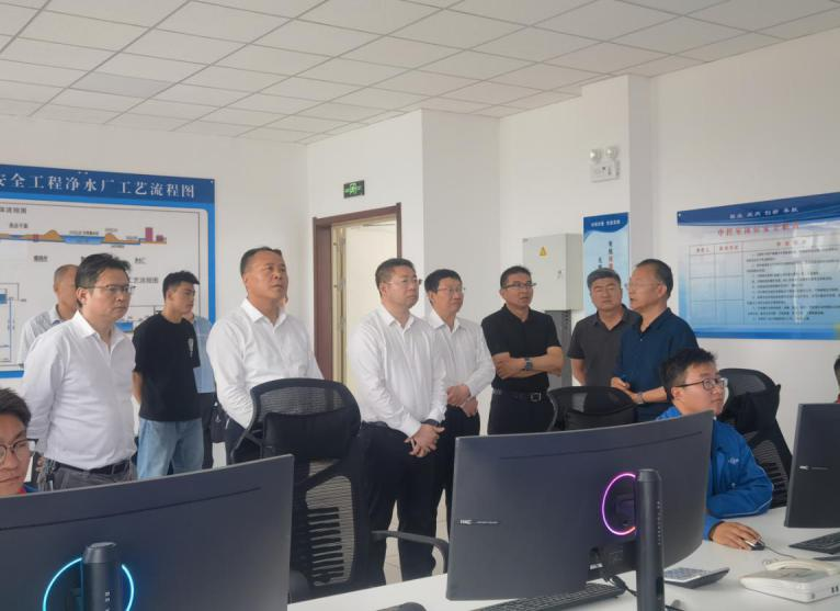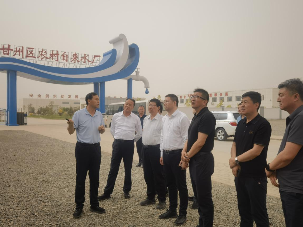 调研组实地调研张掖市污水处理厂、甘肃电投张掖发电有限责任公司、甘州区西浚灌区、河东水厂等地,与当地水行政主管部门和企业、单位负责人深入交流,详细了解了再生水利用配置试点项目建设、水肥一体化及设施农业建设、用水定额执行、节水技术改造及农村饮水安全等情况。