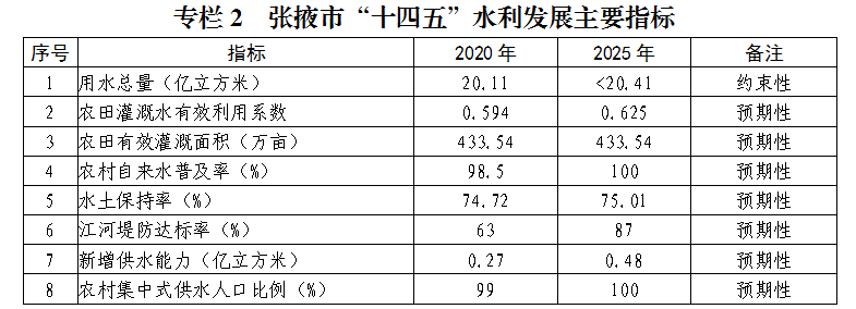 水利是国民经济社会发展的重要基础,是生态环境的控制性要素。为深入推进“十四五”时期全市水利事业高质量发展,着力构建水资源高效利用、供水安全、生态安全、防洪安全、现代水治理五大体系,根据《张掖市国民经济和社会发展第十四个五年规划和二○三五年远景目标纲要的通知》(张政发〔2021〕30号)精神,结合实际,制定本规划。
