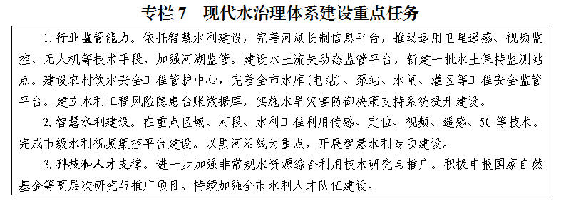 以强化水治理执法为基础,以完善水治理机制为重点,以推进智慧水利建设为手段,全面加强对水资源、江河湖库、水土保持、水利工程、依法治水等方面的监管,构建充满活力、富有效率、创新引领、法治保障的水利体制机制。