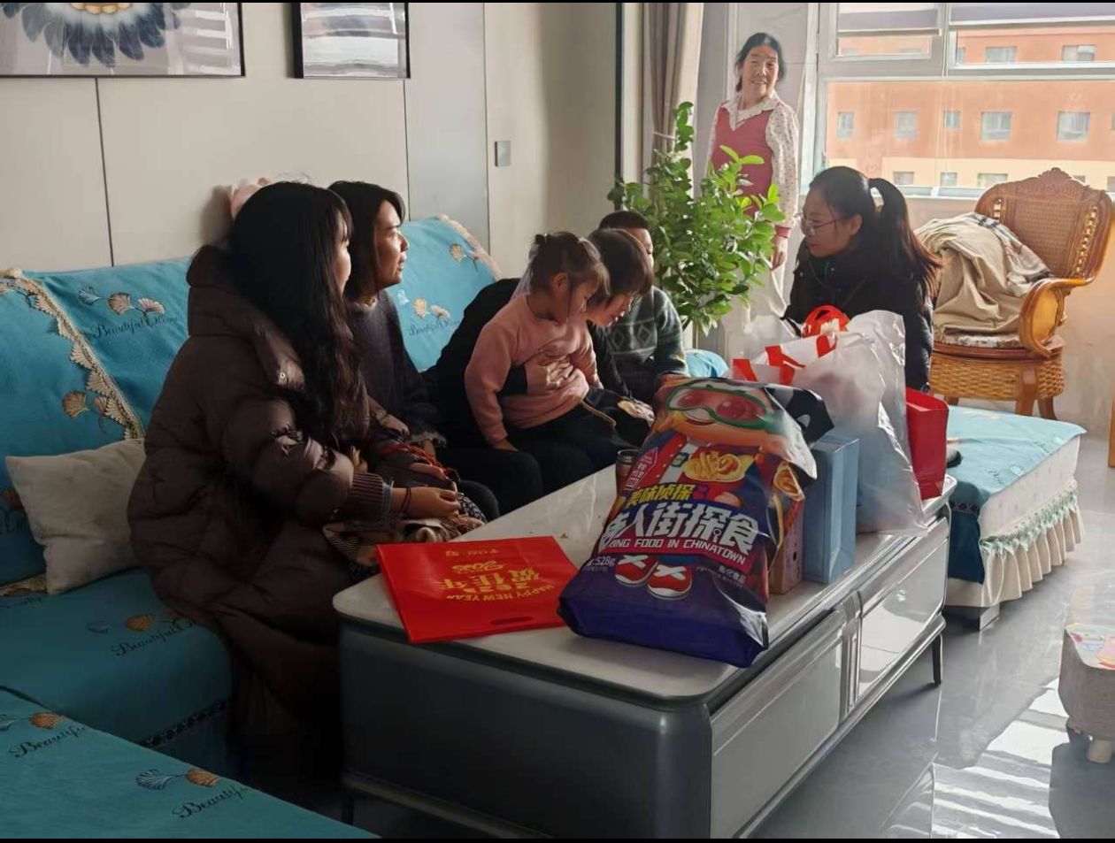 在民乐县新天镇太平村,市政府办公室“爱心妈妈”走入结对帮扶儿童家中,与孩子们的监护人亲切交谈,了解孩子的学习、生活和健康状况,并为孩子们带去了学习资料、保暖衣物等爱心礼物。