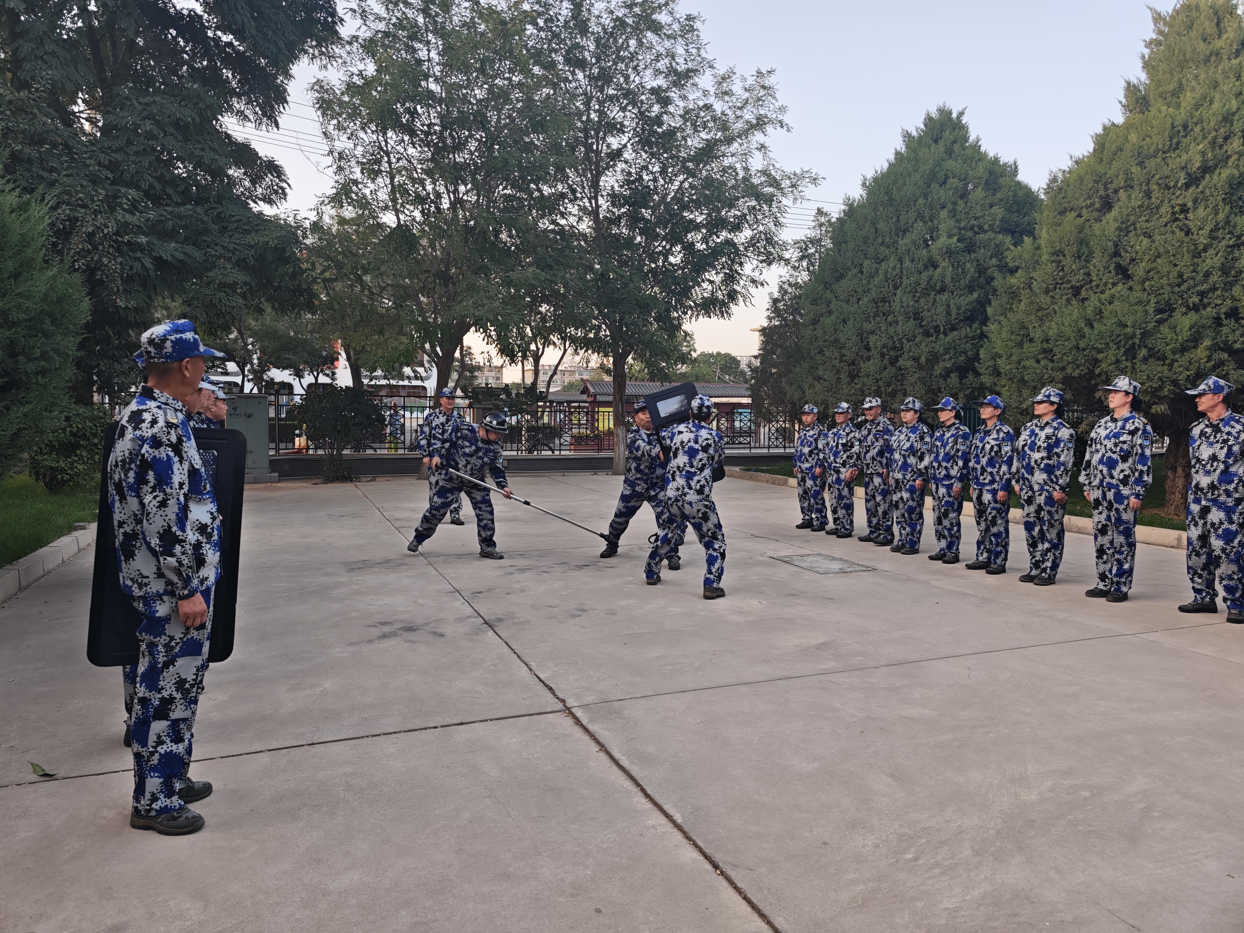 本次培训由市机关事务管理局统一部署安排,市保安服务有限责任公司驻市委市政府保安班具体组织实施。培训内容包括反恐防暴知识学习、防暴及消防器械操作和使用、应急处置流程演练等环节。通过专业讲解和实战演练相结合的方式,重点训练了盾牌、防暴叉等器械的使用技巧,消防设施的使用方法以及突发事件的处置方法。