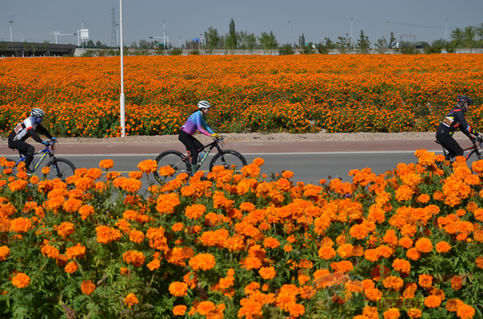 本次比赛分男子精英组、青年组、大师组、女子组4个组别,比赛途经风景如画的临泽县流沙河景区、美轮美奂的张掖七彩丹霞、浩气长存的红西路军梨园口战斗遗址公园,比赛全程60公里,吸引了350多名骑行爱好者报名参赛。