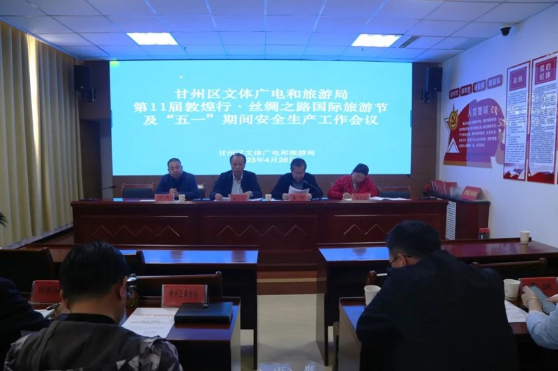 4月26日下午,甘州区文体广电和旅游局召开“第11届”敦煌行丝绸之路国际旅游节暨“五一”期间文旅行业安全生产工作推进会,局属各单位、机关各股室负责人及文化体育旅游企业代表参加了会议。