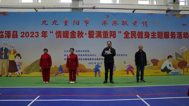 为欢度重阳佳节,10月23日,由临泽县体育运动中心、临泽县沙河镇惠民社区居民委员会共同主办的2023年“情暖金秋·爱满重阳”全民健身主题服务活动在临泽县全民健身中心、沙河镇综合养老服务中心隆重举行。