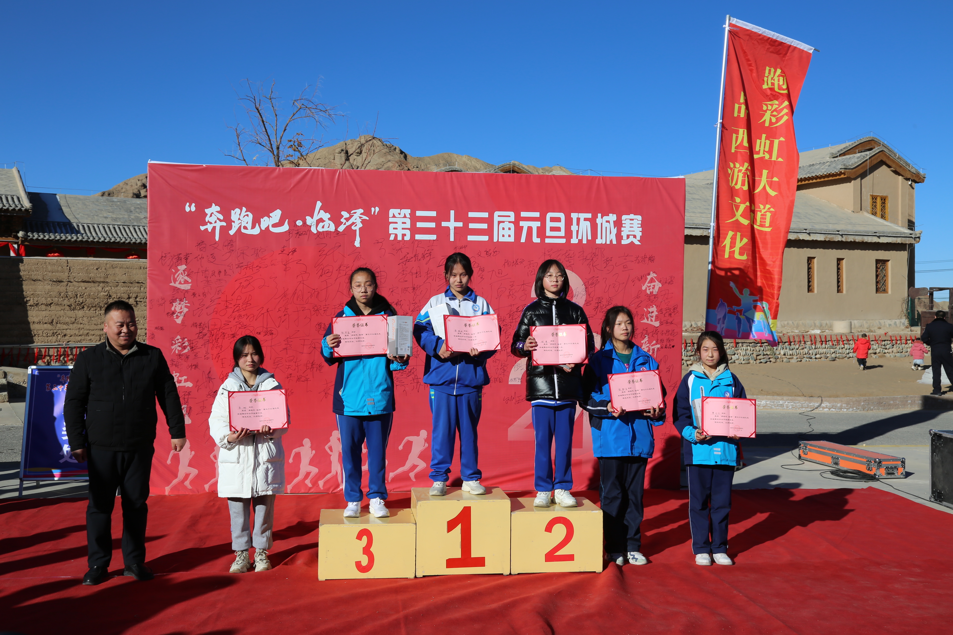 逐梦彩虹跑,奋进新征程!在2024新年序曲即将唱响之际,由临泽县文体广电和旅游局主办,县体育运动中心、鸿健文体旅游产业发展有限公司承办的“奔跑吧·临泽”第三十三届元旦环城赛在丹霞彩虹康养谷隆重举行。
