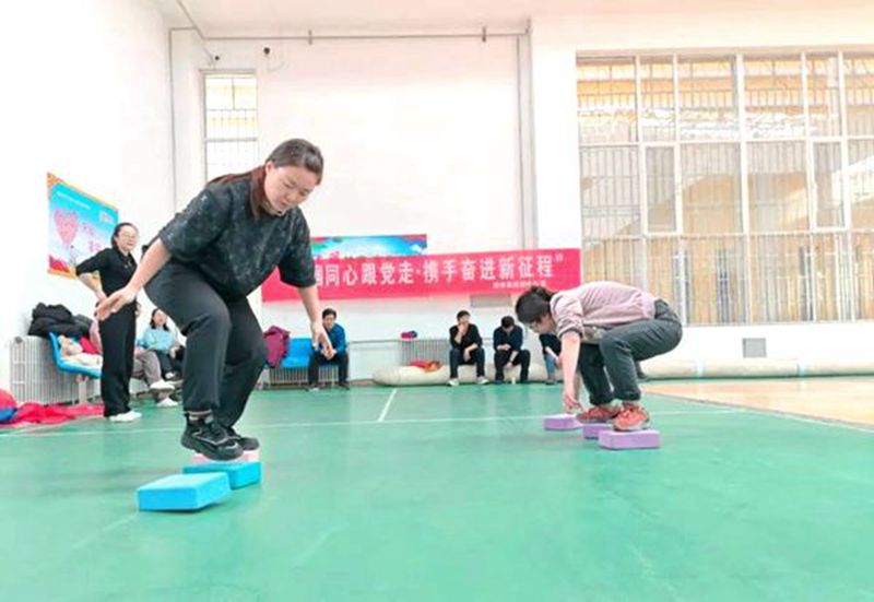 活动期间, 队员个个神采飞扬、精神抖擞。两人三足跑,他们步调一致;袋鼠跳时,他们身轻如燕;珠行万里时,他们合作无间;三步移砖时,他们屏息凝神;男女大连蹲时,大家热情高涨。此时的女职工们不仅是人民健康的守门人,更是自己生活舞台上的女主角。台上热情四溢,台下掌声雷动,一时间,场内的所有角落都流淌着广大职工们的欢声笑语,体育馆已经成为欢乐的海洋。