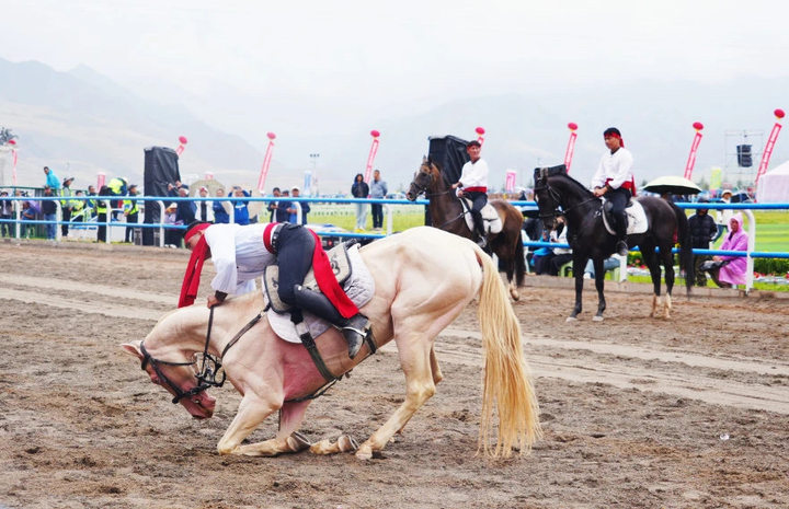 赛场上,骑手们策马扬鞭、你追我赶,一匹匹骏马奋蹄疾行,驰骋赛场。别开生面的赛骆驼更是吸引了不少游客和摄影爱好者拍照留影。