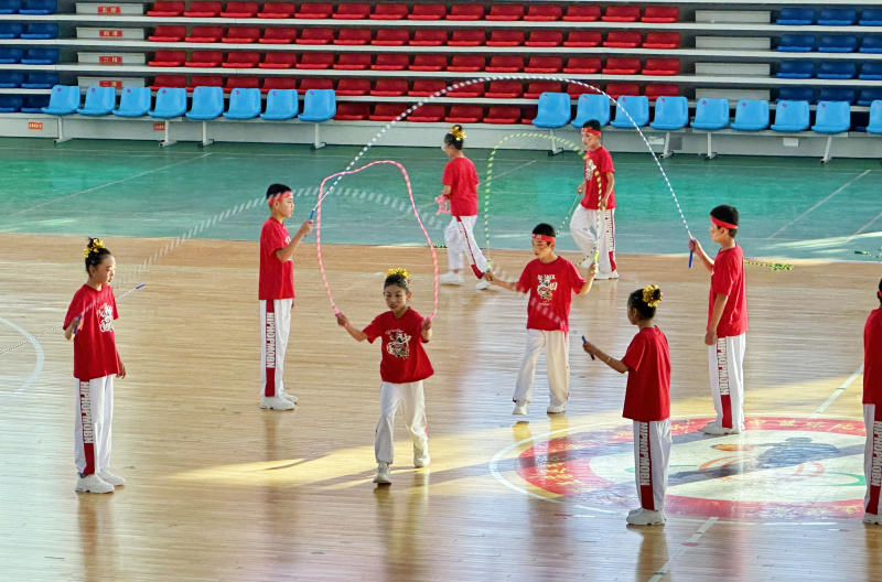 本次比赛设置集体自编花样跳绳、个人规定花样、车轮花样、交互绳花样、30秒单摇、30秒双摇、4×30秒单摇接力、交互竞速赛、10人长绳“8”字跳等项目。比赛现场,“绳”舞飞扬,青春洋溢。音乐一响,每个参赛选手都使出了浑身解数,绳在手中飞速地旋转,宛如条条彩龙飞舞;脚在地面不停地跳跃,犹如个个音符跳动,奋力拼搏的身影,洋溢着飞扬的青春活力。