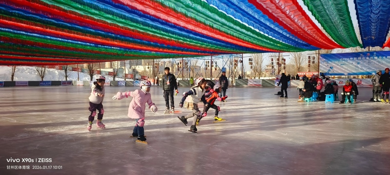 1月17日,为吸引更多人群参与冰雪运动,感受其独特魅力,2026年张掖市全民健身主题活动暨“巩固和扩大‘带动三亿人参与冰雪运动’成果”大众滑冰邀请赛在张掖丝路明珠冰雪大世界开赛。