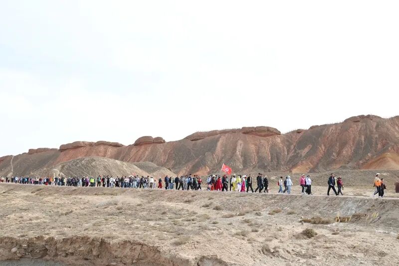 上午9时许,踏青徒步活动率先拉开帷幕。来自市县户外徒步团队、各大旅行社及研学团队的户外运动爱好者们蜂拥而出,从起点出发,途经麻子面馆、七彩仙缘、二号观景台,向终点景区西门进发。沿途雄奇的丹霞地貌与盎然春日景致相互交融,参与者在徒步健身的同时,沉浸式领略“一步一景、满目皆画”的临泽文旅风光。