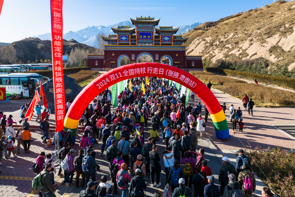 为深入学习贯彻党的二十大、二十届三中全会精神和习近平总书记关于体育的重要论述精神,扎实推进体育赛事“进景区”,促进体育文化旅游融合发展, 11月10日上午,2024“双11”全国持杖行走日(张掖肃南站)活动在肃南县马蹄寺风景区举行。来自省内酒泉、嘉峪关、金昌、武威等周边地区和我市的户外徒步和体育健身爱好者,共600多人参加。