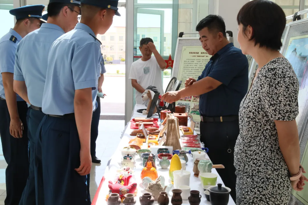 我县非物质文化遗产传承人现场展出非遗文创产品上百件,非遗传承人退役军人赵振龙详细讲解了红枣木雕相关技艺,使在场官兵对木雕产生了浓厚的兴趣。