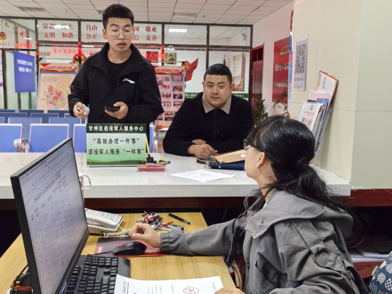 在报到过程中,为强化退役报到全过程无缝衔接,甘州区退役军人服务中心通过业务整合、事项融合、简化流程,按照“军人退役一件事”服务事项,以“一次告知、一次办结、一站服务、一窗通办”为准则,让前来报到的退役士兵“一站式”办理相关业务。