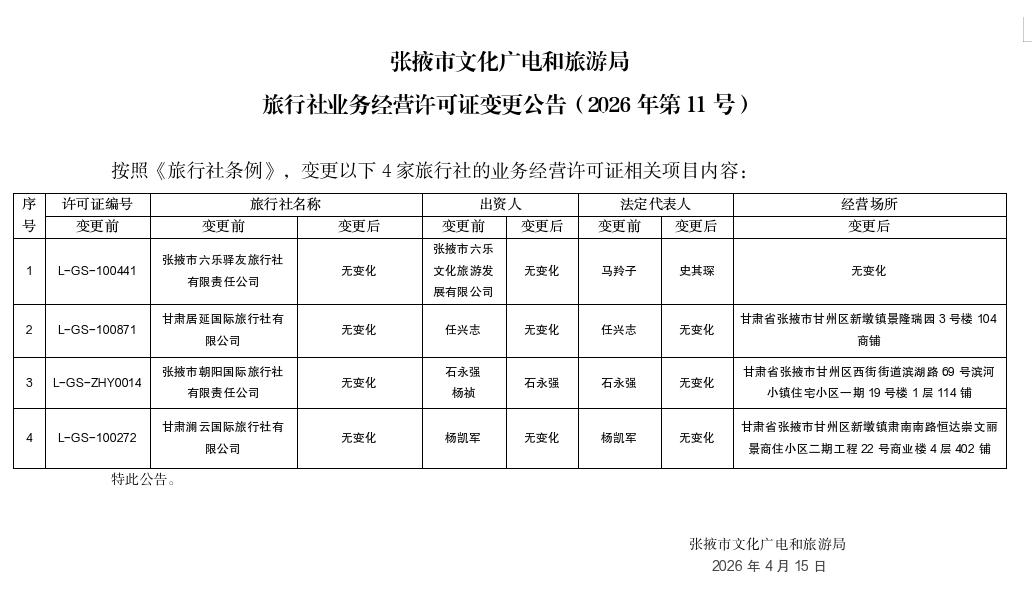 来源:张掖市文化广电和旅游局日期:2026-04-15