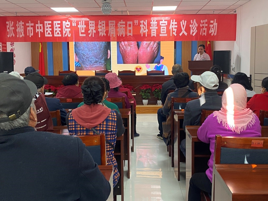 义诊结束后,皮肤科医师以即将到来的“世界银屑病日”为契机,以《银屑病的就医和康复》为题,用图文并茂的幻灯片形式为社区居民耐心讲解银屑病的预防、治疗和康复问题,帮助群众进一步了解银屑病治疗途径和方式,提高对疾病的健康认知水平,指导有就诊需求的银屑病患者正规用药和科学管理,从而预防疾病和减少复发。