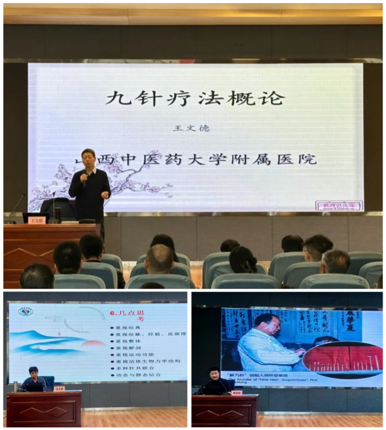 授牌仪式结束后,王文德教授、沈永勤教授、姚景南教授分别就《九针疗法概论》《基于经典下的微针刀临床实践》《磁圆针——经穴磁导疗法》进行了专题讲座,并与大家就相关问题进行了深入交流。