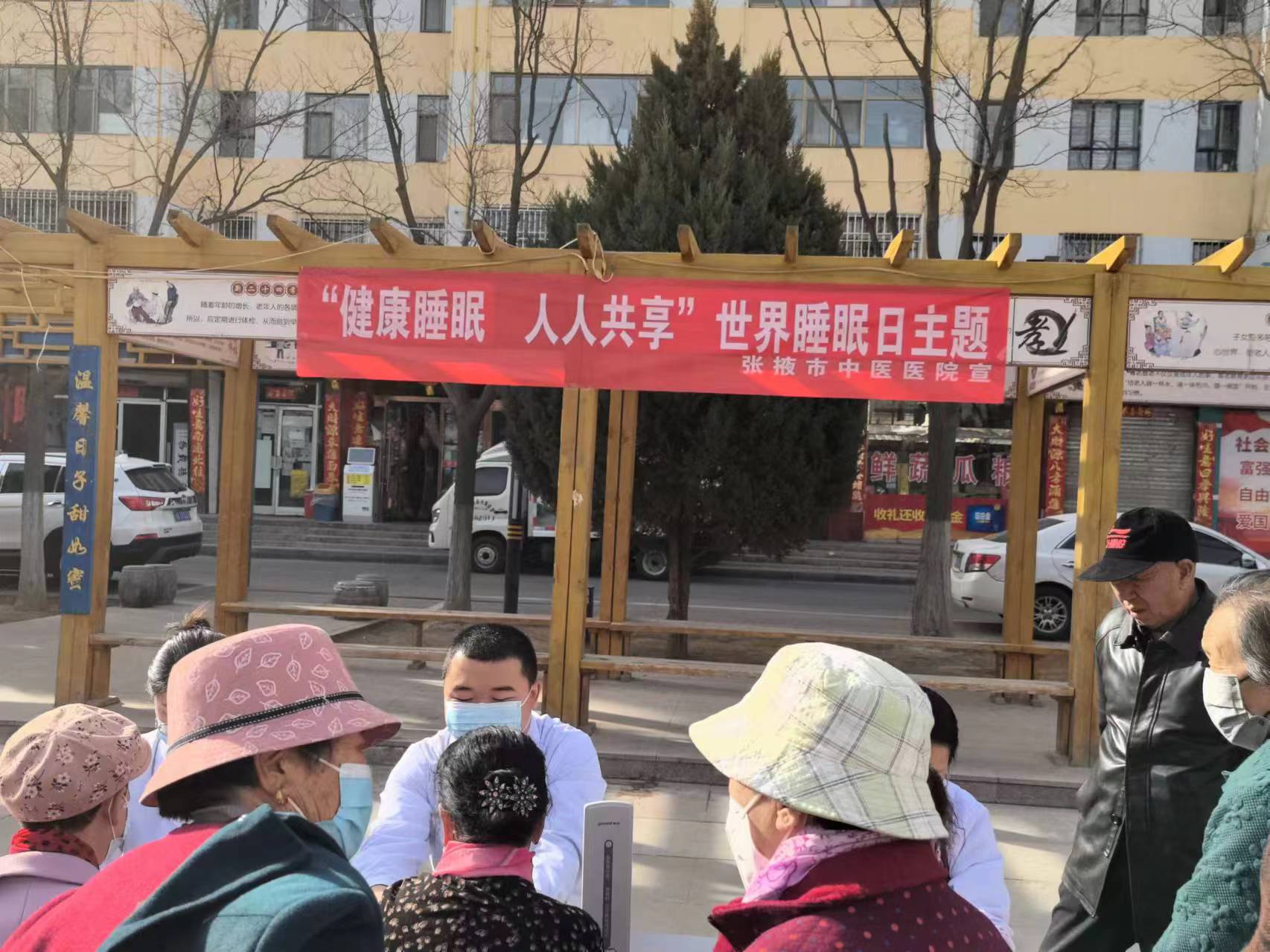 3月21日是第24个世界睡眠日,今年的活动主题是:健康睡眠,人人共享。为提高群众对睡眠重要性的认识,科普优质睡眠的重要性,张掖市中医医院睡眠管理专科门诊联合心血管科在金安苑社区开展睡眠咨询和义诊宣教活动,普及健康睡眠,提升睡眠质量,促进健康生活方式的养成。
