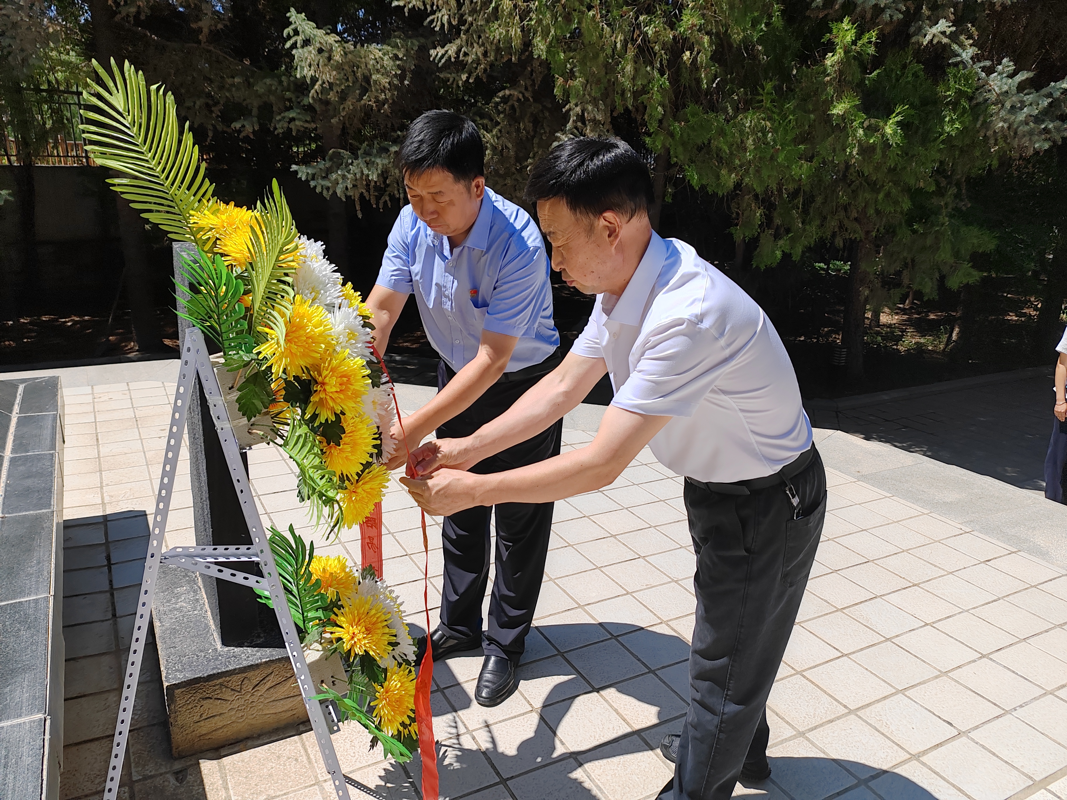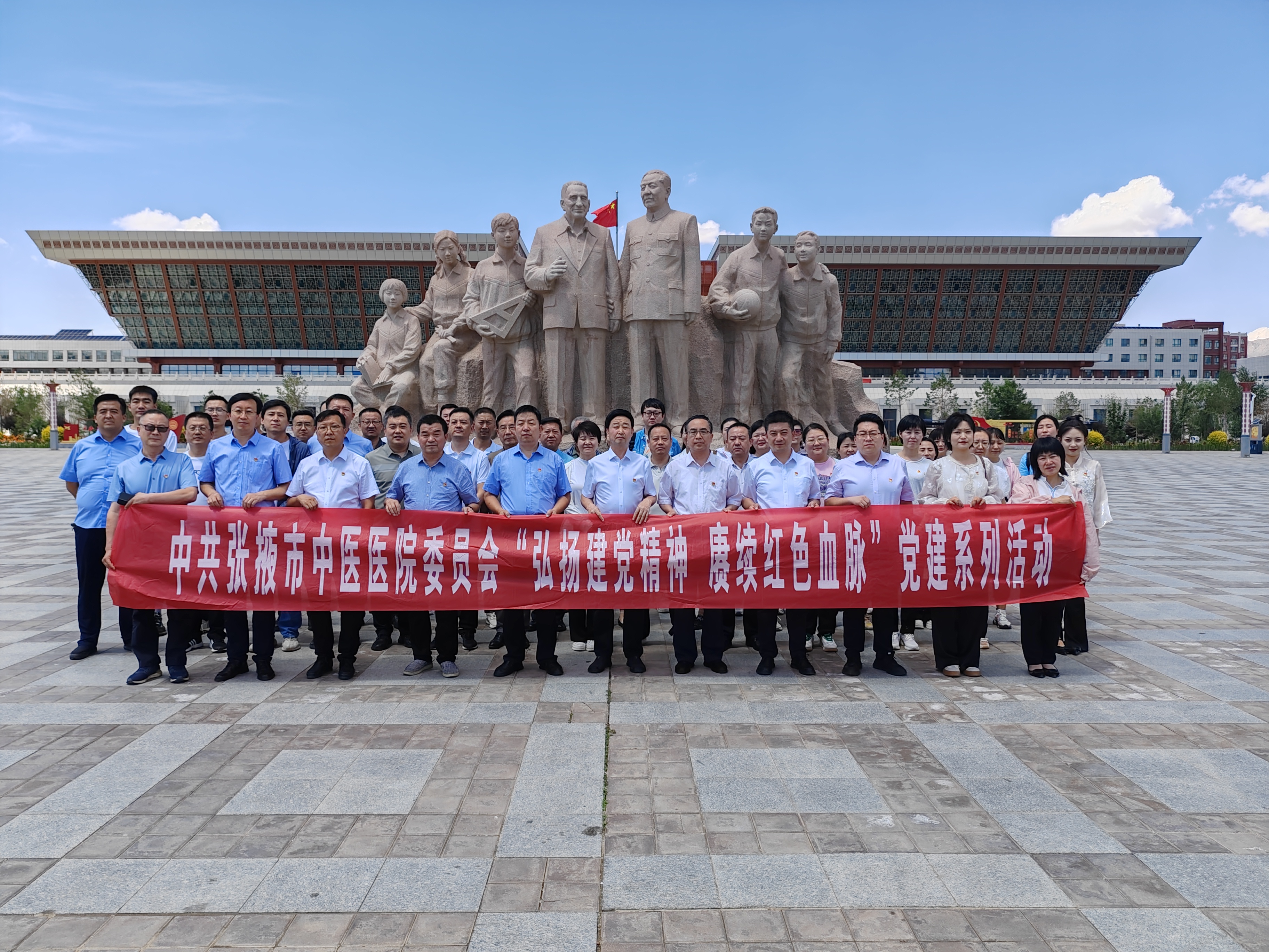 为庆祝中国共产党成立103周年,讴歌党的丰功伟业,追忆党的光辉历程,弘扬伟大建党精神,发扬党的光荣传统和优良作风。在“七一”建党节当日,张掖市中医医院党委以“弘扬伟大建党精神,赓续红色血脉”为主题,在党委书记张奋杰同志的带领下,领导班子在家成员和所属6个支部党员代表共计50余人赴山丹开展党建系列活动。