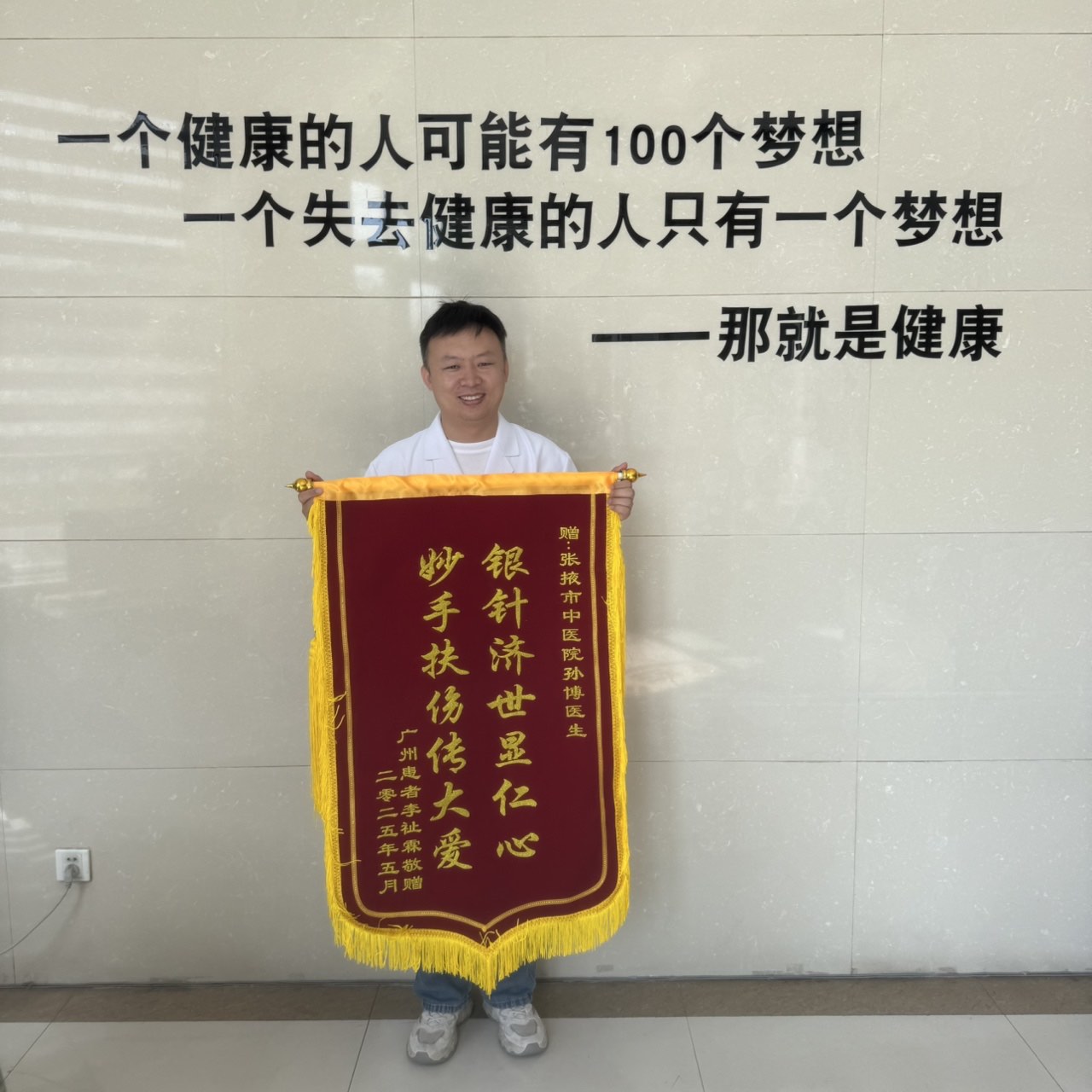 孙博医生的表现是我们针灸推拿理疗中心工作面貌的一个缩影。这面锦旗,这份跨越三千公里的医患情谊,恰似祁连山巅的雪水,浸润着张掖中医人“大医精诚”的初心。它将激励我们针灸推拿理疗中心全体医护人员更有信心做好本职工作,积极弘扬中医适宜技术,为更多群众提供健康帮助。正如孙博医生常说的:“医病更要医心,让每个遇见张掖中医的人,都能带走两份礼物:康健的身体和温暖的记忆。”