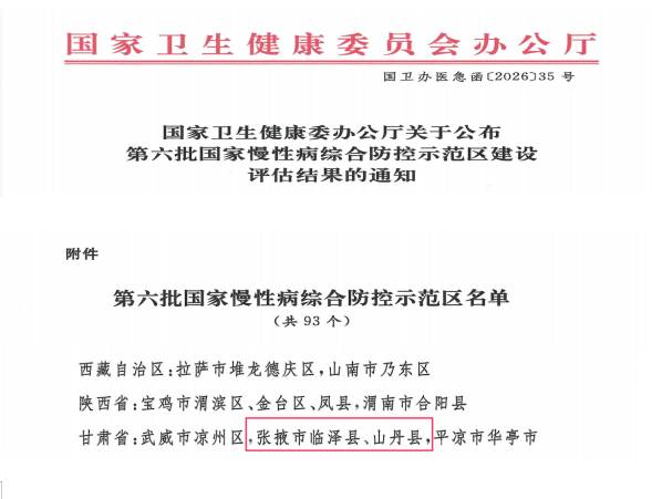 深耕慢病防控 守护全民健康——临泽县、山丹县跻身第六批国家慢性病综合防控示范区'>