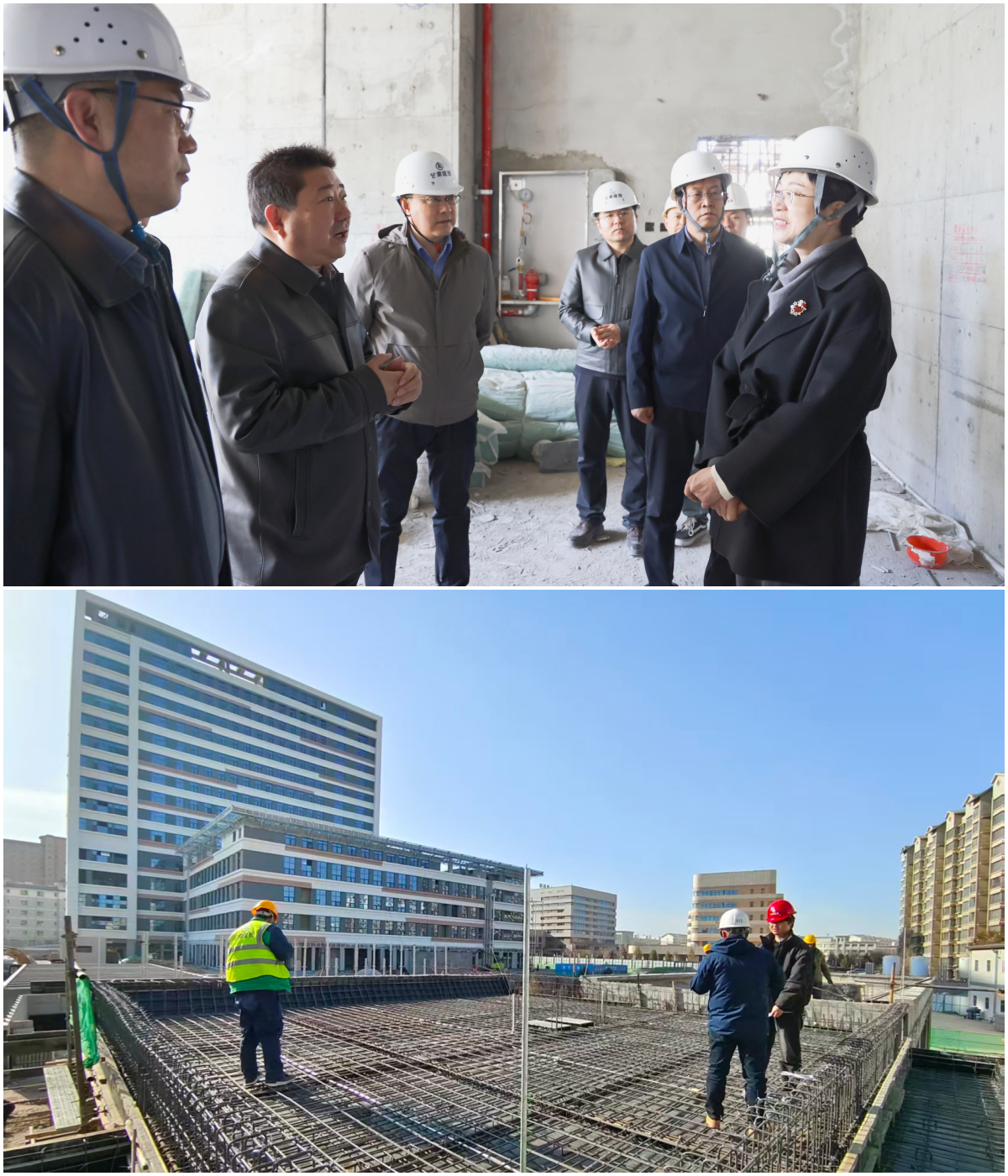 殷鸿雁立足全市卫生健康事业高质量发展大局,围绕项目建设攻坚冲刺工作提出三点明确要求。一是提高政治站位,紧盯时间节点攻坚突破。要深刻认识项目建设的政治意义和民生价值,将其作为践行以人民为中心发展思想的具体实践,严格按照既定目标倒排工期、挂图作战,细化任务清单、压实工作责任、统筹各方力量,坚决确保5月底门诊部分区域投入使用,10月份项目全面竣工并逐步投入使用。二是坚守底线思维,统筹推进进度质量安全。 要牢固树立“安全第一、质量为本”的理念,在抢抓施工进度的同时,严把工程质量关、安全管理关,强化施工现场安全监管,细化安全生产举措,坚决守牢安全生产底线。三是强化系统观念,提前谋划运营筹备工作。要坚持“建设与运营”同步推进,提前布局学科建设、人才储备、流程优化等重点工作,推动医疗资源整合与服务能力提升同频共振,实现项目建设向高效运营的无缝衔接,以优质医疗资源供给为核心,精准对接河西区域群众健康需求,全力打造河西区域医疗新高地。