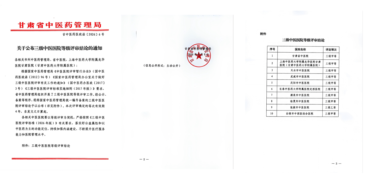 此次晋级,既是里程碑,更是新征程的起点。我院将落实好公益属性和以中医药为主的功能定位,持续加强内涵建设,不断提升医疗服务能力和医院管理水平,全力打造河西地区一流中医医疗中心,为守护人民群众身体健康、助力健康张掖建设贡献更大中医力量。