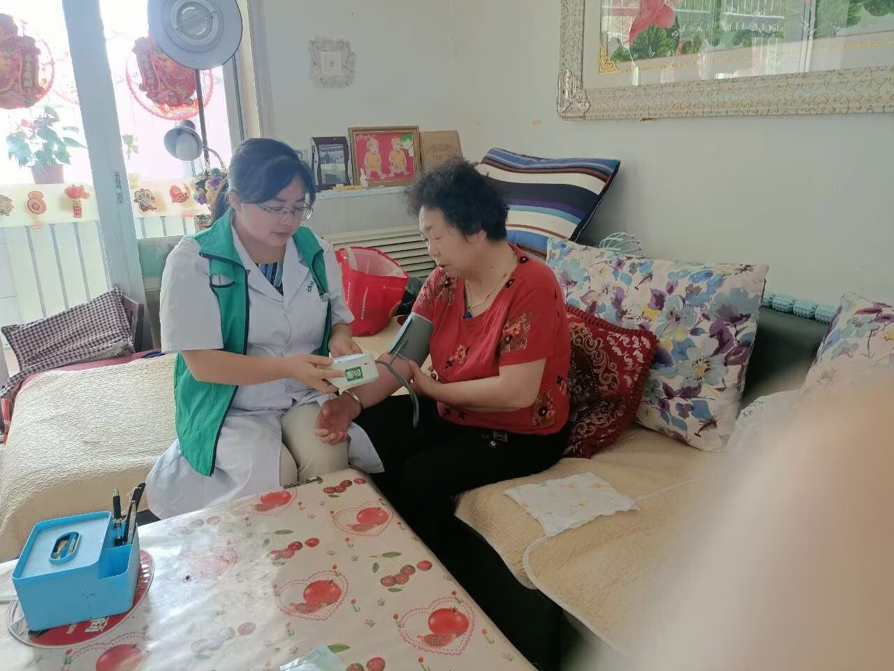 北街社区卫生服务中心为老人带去了一份特殊的“健康礼物”,提供上门义诊服务、开展免费健康体检活动。活动中北街社区卫生服务中心医务人员与老人聊家常、谈生活,热情耐心地对老人进行心理咨询和心理疏导,帮助老人摆脱心理寂寞和精神孤独,使他们保持乐观健康的生活态度。耐心地询问老人的身体状况和病史,让每位老人“零距离”享受便民优质的医疗服务。