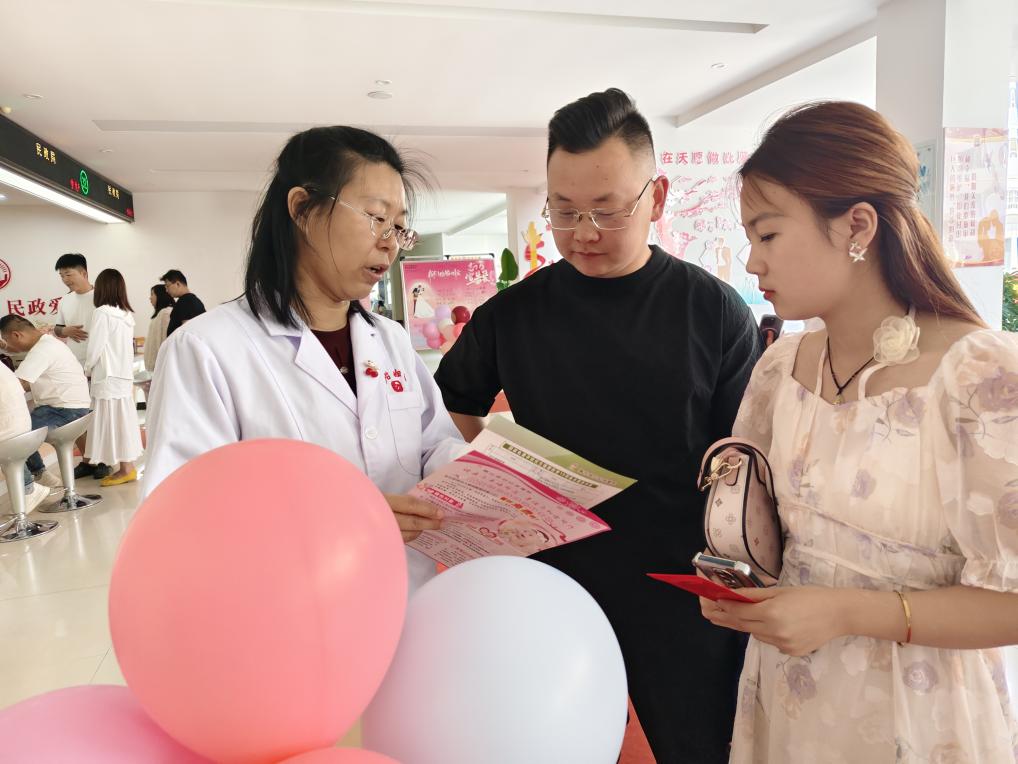活动现场,医护人员为前来结婚登记的新人们发放宣传折页,讲解免费婚检相关政策,普及婚检意义。通过婚检,不仅能及时发现潜在健康隐患,避免疾病在夫妻间相互传染,还能为孕育健康宝宝打下坚实基础。