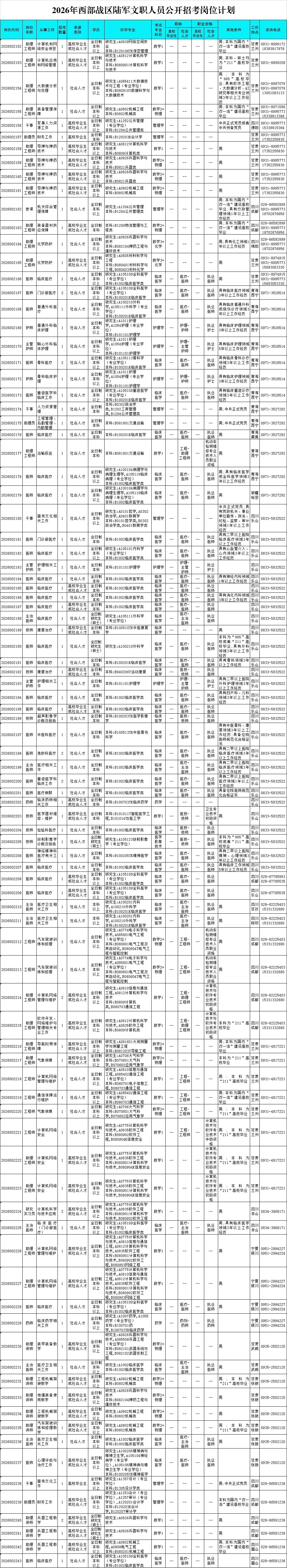 现将西部战区陆军2026年面向社会公开招考文职人员岗位计划和咨询电话予以公布,欢迎符合条件人员积极踊跃报考。