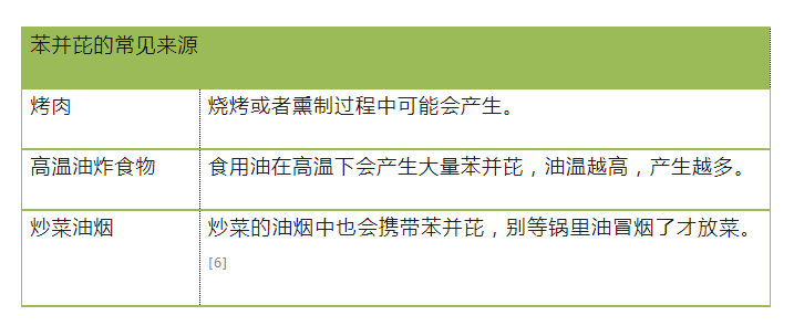 厦门大学附属中山医院肿瘤科副主任医师潘战和 2017 年在健康时报刊文表示,采取烧烤或者熏制的方法,制作过程中就可能会产生杂环胺和多环芳烃,其中大家最熟知的是一种叫作苯并芘的化学物,很多烤制、熏制的食品都可能含有。[4]
