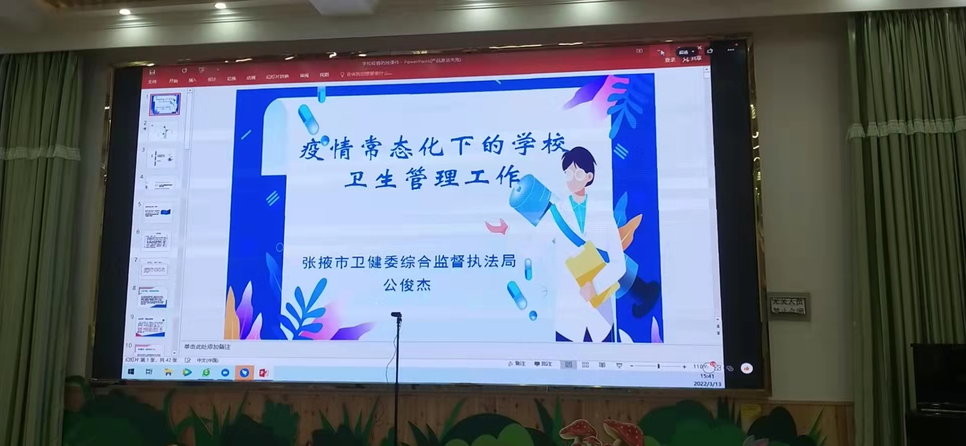 我局学校卫生首席卫生监督员公俊杰结合国内外和省市疫情形势及近期学校春季新冠肺炎疫情及其他传染病专项监督检查工作中发现的主要问题,有针对性的对《中小学校新冠肺炎疫情防控技术方案(第四版)》及“两案九制”相关内容进行了“划重点”“解剖式”的系统解读,重点针对师生健康监测、因病缺课登记、病愈复课查验及消毒通风等制度的落实进行了详细讲解。并结合全市学校卫生工作现状和近期监督检查中发现的主要问题,在通报学校疫情防控问题的基础上,以问题为导向,在会上进行了五个方面的工作提醒:一是落实学校传染病防控责任。提醒学校对“两案九制”各项防控制度和措施,特别是晨午检制度、因病缺课追踪登记制度、病愈复课查验制度的落实进行再规范。二是规范执行学校消毒、消杀制度。提醒学校使用消毒用品时要看有效期、看使用说明、明确消毒方式,按推荐浓度进行配比,同时要避免过度消毒。三是加强学生健康教育。提醒学校采取多种形式的培训切实增强师生个人卫生防护意识,养成良好的健康行为和卫生习惯。四是对应急预案进行动态优化。提醒学校针对性地开展全流程、全要素、实战化疫情防控应急演练,检验预案、磨合预案、完善预案,提高学校疫情整体应急处置能力。五是落实学校传染病疫情报告制度。提醒学校运用信息化手段,严格落实“日报告”“零报告”制度,发现问题,依法报告,做到传染病早发现、早报告、早处置。