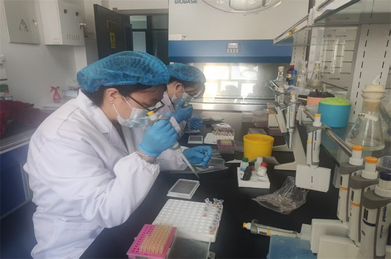实验室检测人员重点对华瑞、祁鸣、祥和顺、祁连雪域等参与强制免疫“先打后补”的规模养殖场送检的500份血清开展抗体效价检测,检测项目包括牛羊O、A型口蹄疫、猪口蹄疫、鸡H5、H7禽流感,经检测抗体水平均合格。