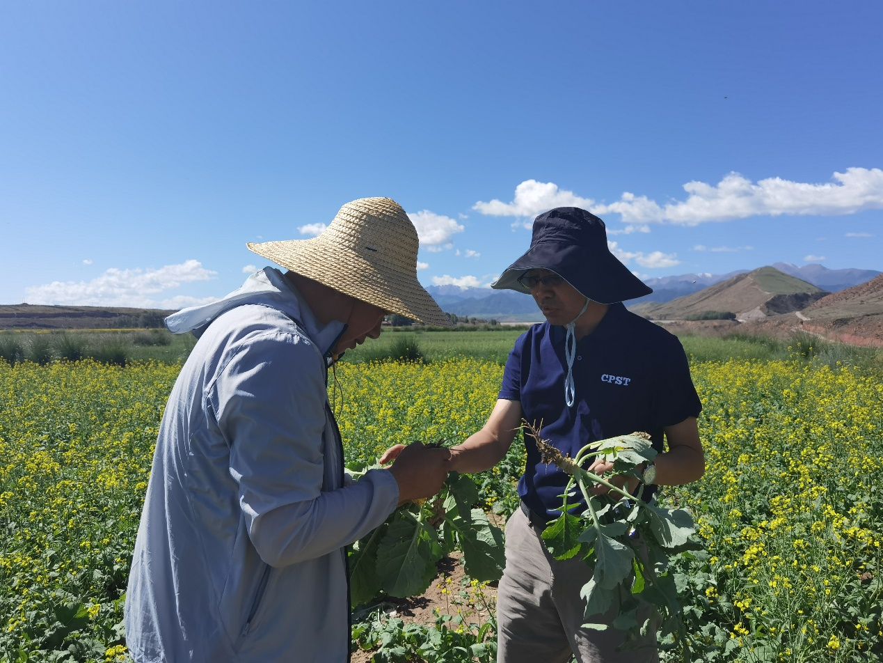 7月4日,国家油菜产业技术体系张掖综合试验站、经济作物研究所副所长、副研究员李继强、任丽君、实习生三人来到民乐县永固镇邓庄村对个别病害油菜进行了田间取样及调查。
