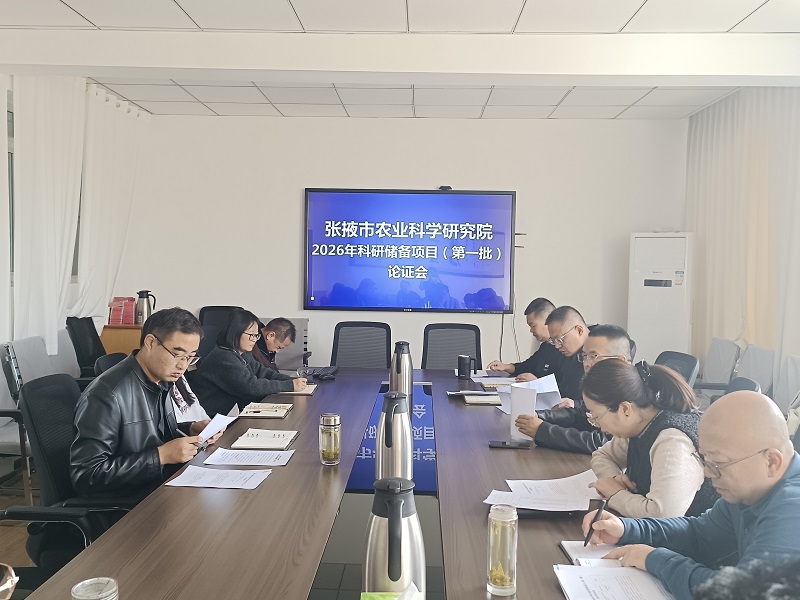 3月18日,张掖市农业科学研究院2026年科研储备项目(第一批)论证会顺利召开。按照科研项目“广泛征集、科学评审、动态管理、精准推荐”全流程储备机制,对玉米制种单产提升绿色高效技术集成研究与示范推广、高产优质抗旱耐寒玉米新品种选育等10个重点储备项目进行论证,专家组现场精准评议、悉心指导,全力提升科研项目立项质量,为科技创新赋能特色农业发展筑牢根基。