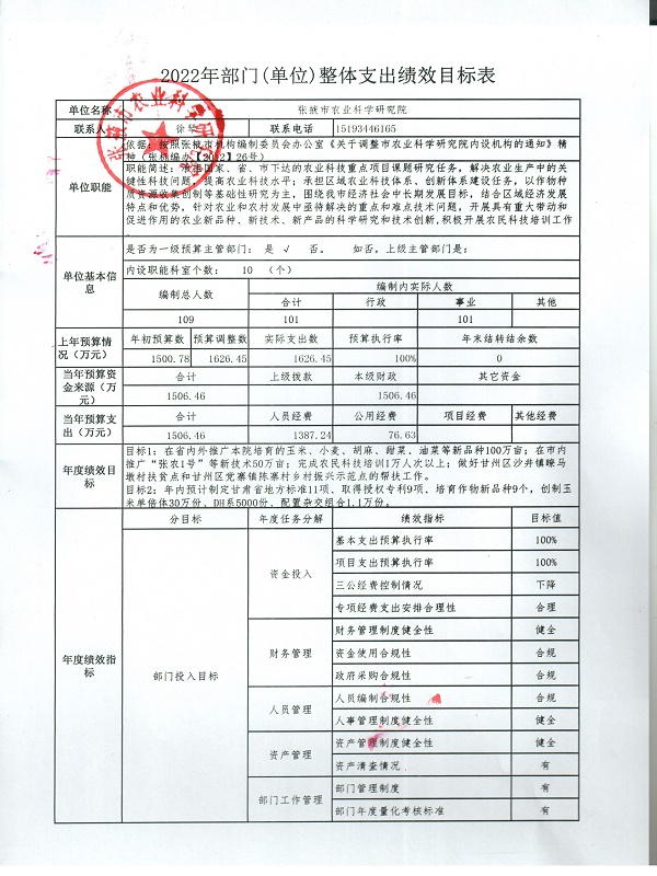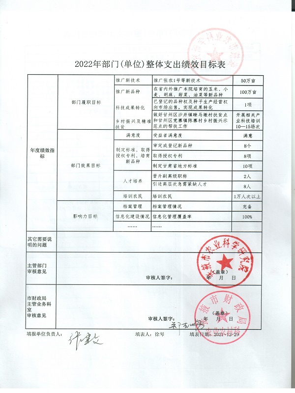 12.2022年部门(单位)整体支出绩效目标表