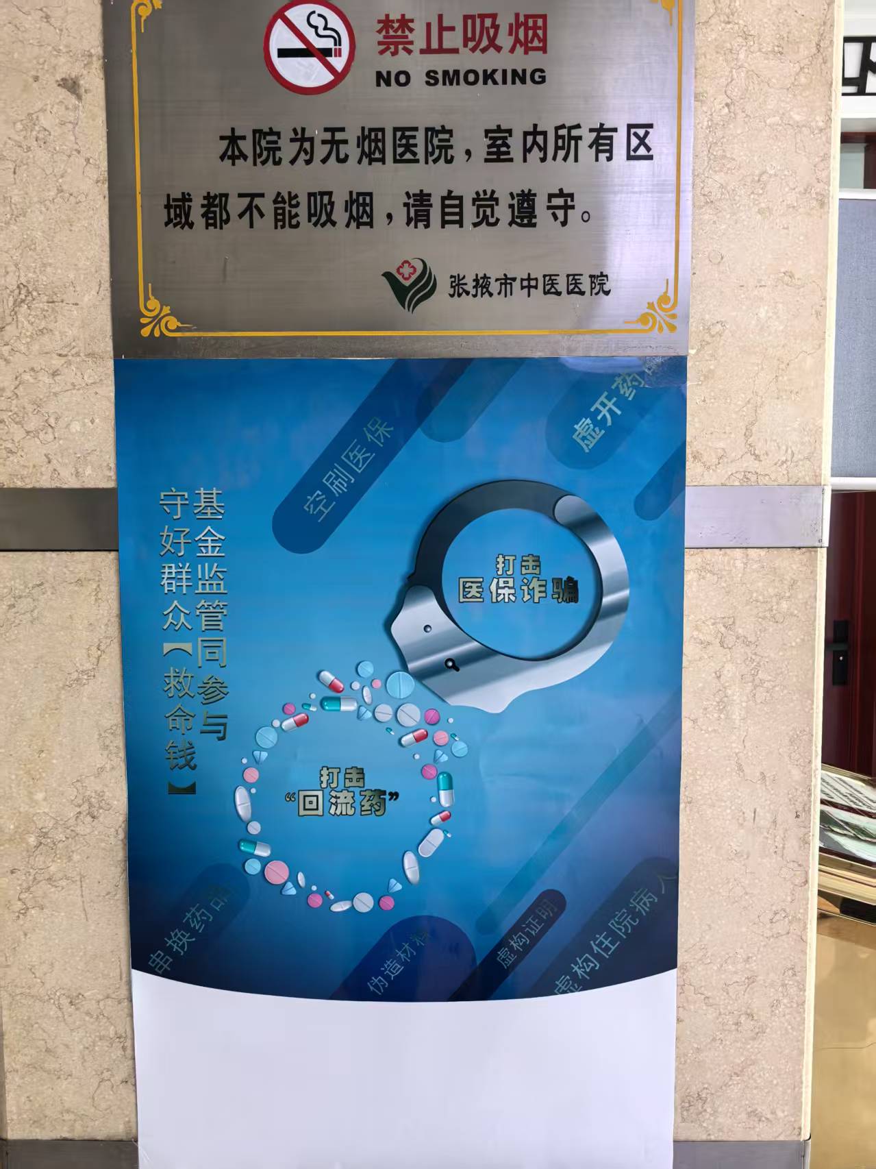 (二)环境氛围营造。在门诊大厅、住院部等区域电子屏滚动播放“守护救命钱,拒绝骗保行为”等主题宣传标语,张贴宣传海报6张,通过图文并茂的形式普及医保法律法规。