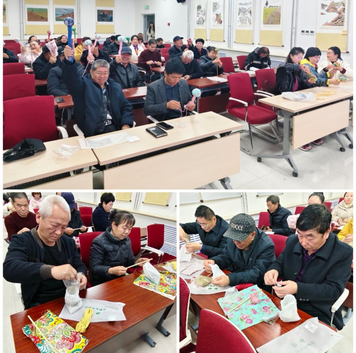 艾草养生捶制作体验是本次活动的特色环节,志愿者们提前准备好了艾草、棉布、彩绳、填充物等材料,现场详细讲解艾草的养生功效、养生捶的制作步骤与使用方法。老人们兴致高昂,在工作人员的指导下,穿针引线、填充艾草、缝制成型、装饰点缀,一步步完成属于自己的养生捶。大家相互交流技巧、分享心得,现场欢声笑语不断,气氛十分热烈。经过一番忙碌,一个个造型精致、散发着艾草清香的养生捶相继完工,老人们手握亲手制作的养生捶,脸上洋溢着幸福的笑容,纷纷表示“这个养生捶实用又有意义,在家就能按摩放松,感受到了满满的心意”。