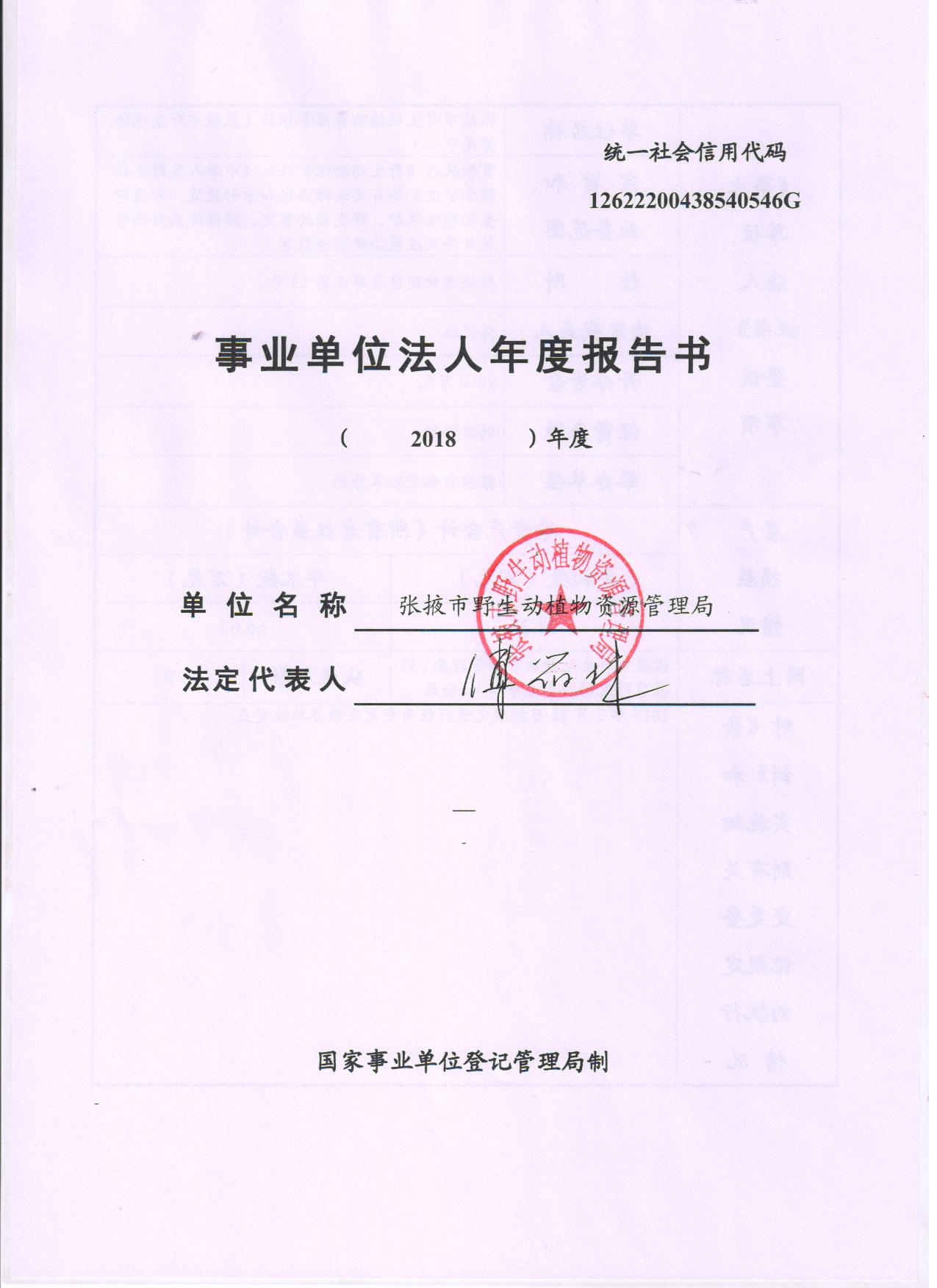 关键词: 张掖市野生动植物资源管理局;事业单位法人年度报告