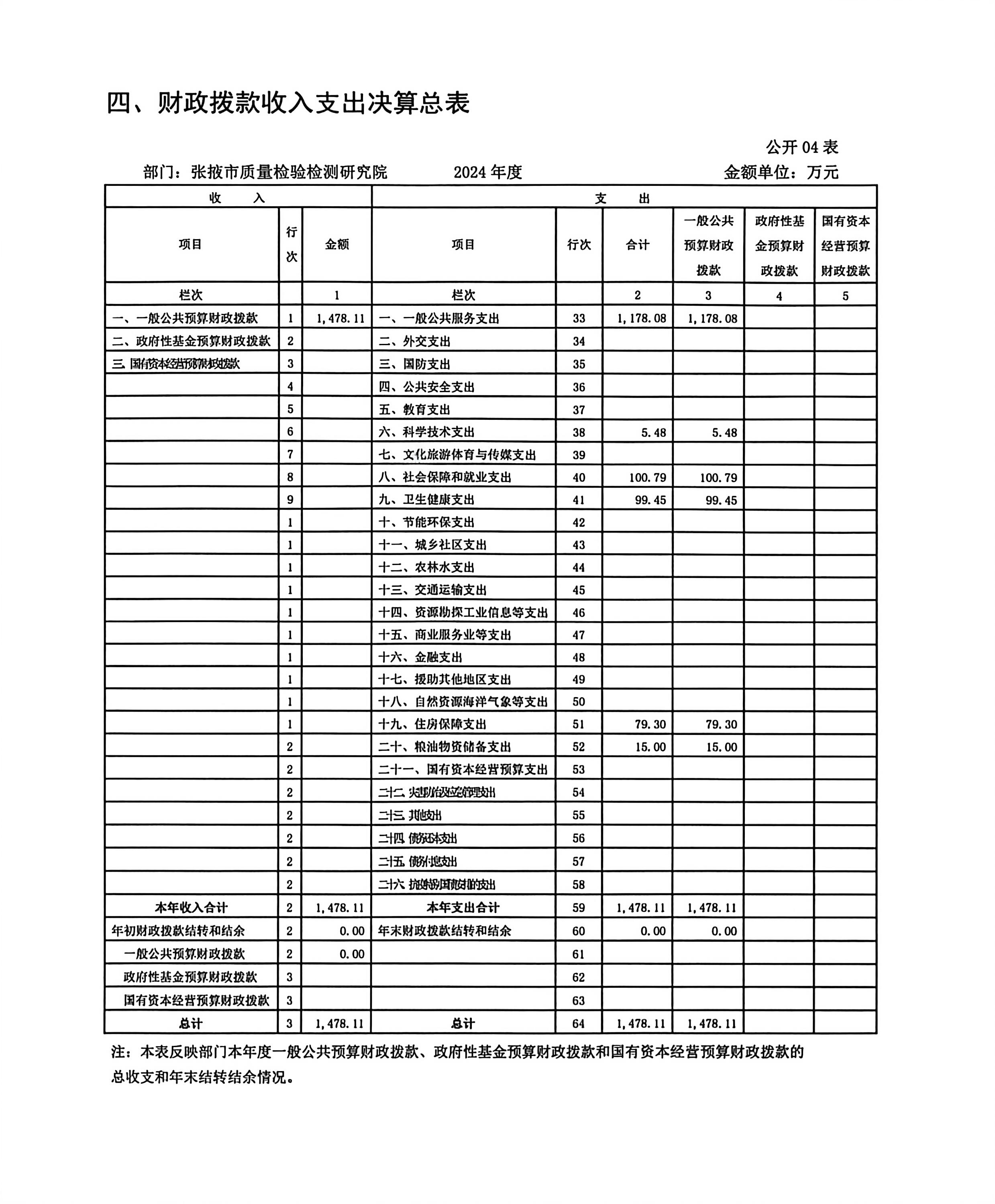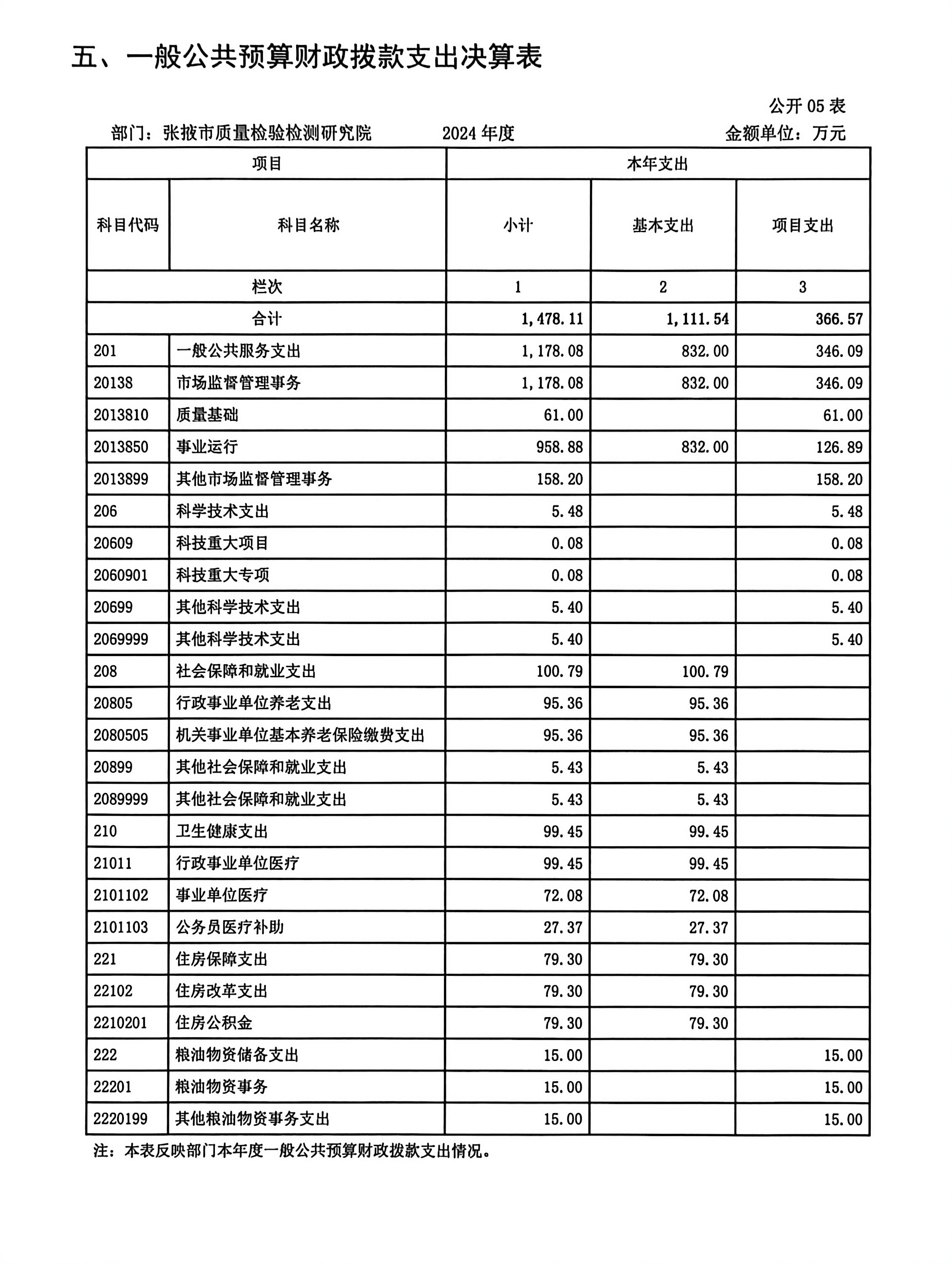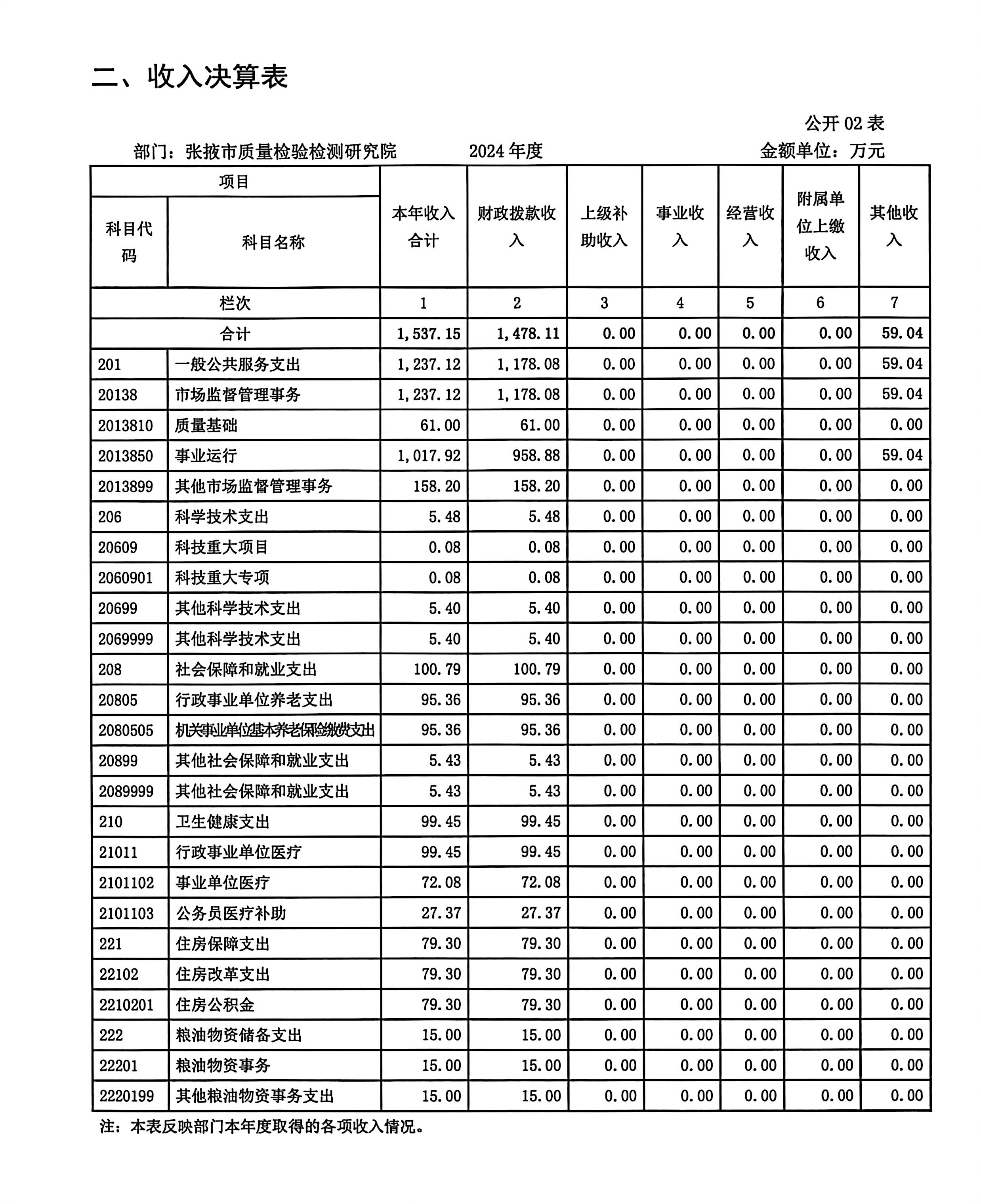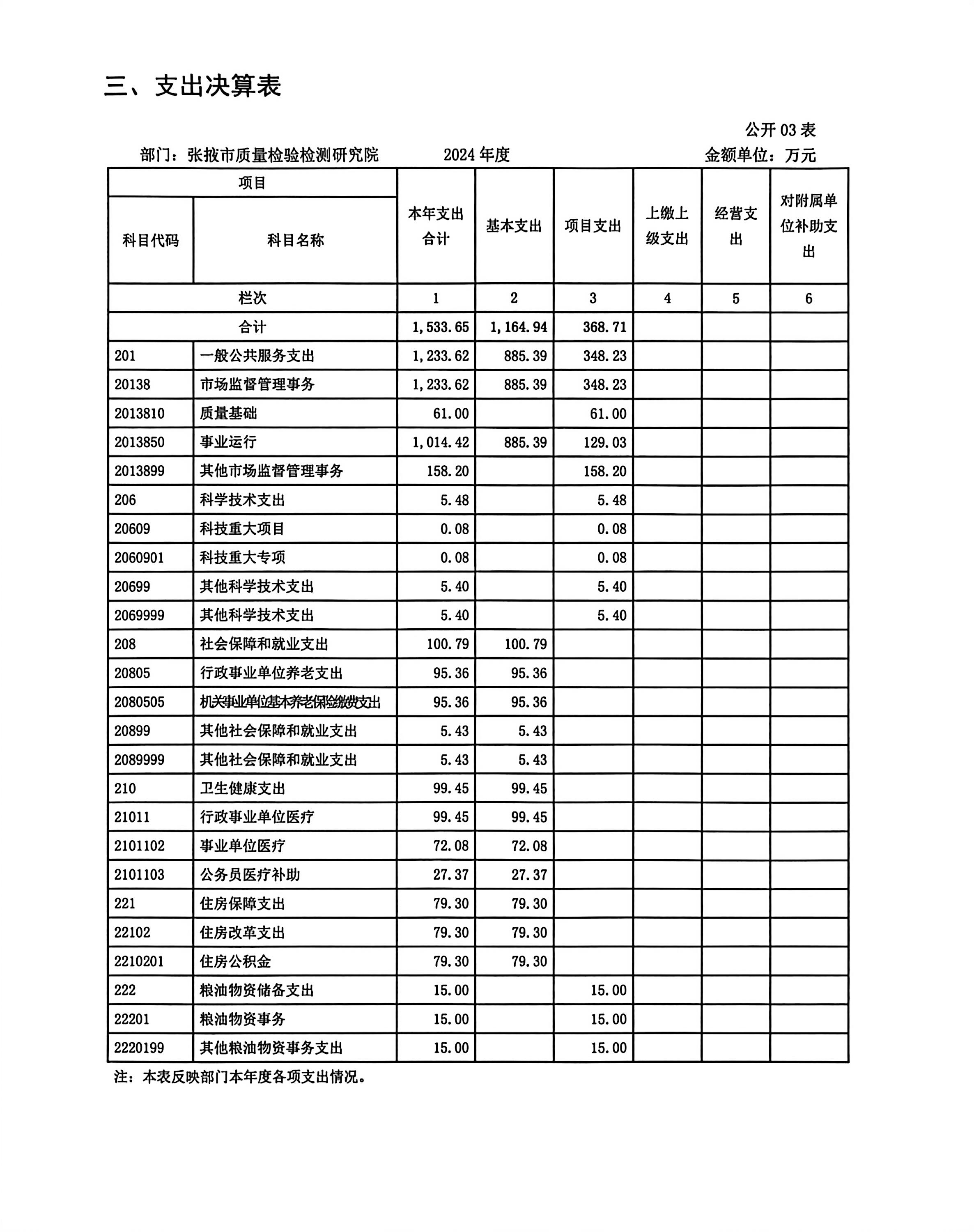 2024年度张掖市质量检验检测研究院部门决算