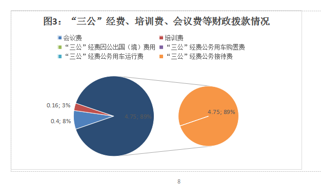7、“三公”经费:指因公出国(境)费、公务用车购置及运行维护费和公务接待费。其中,因公出国(境)费反映单位公务出国(境)的国际旅费、国外城市间交通费、住宿费、伙食费、培训费、公杂费等支出;公务用车运行维护费反映单位按规定保留的公务用车租用费、燃料费、维修费、过路过桥费、保险费、安全奖励费用等支出;公务接待费反映单位按规定开支的各类公务接待(含外宾接待)支出。